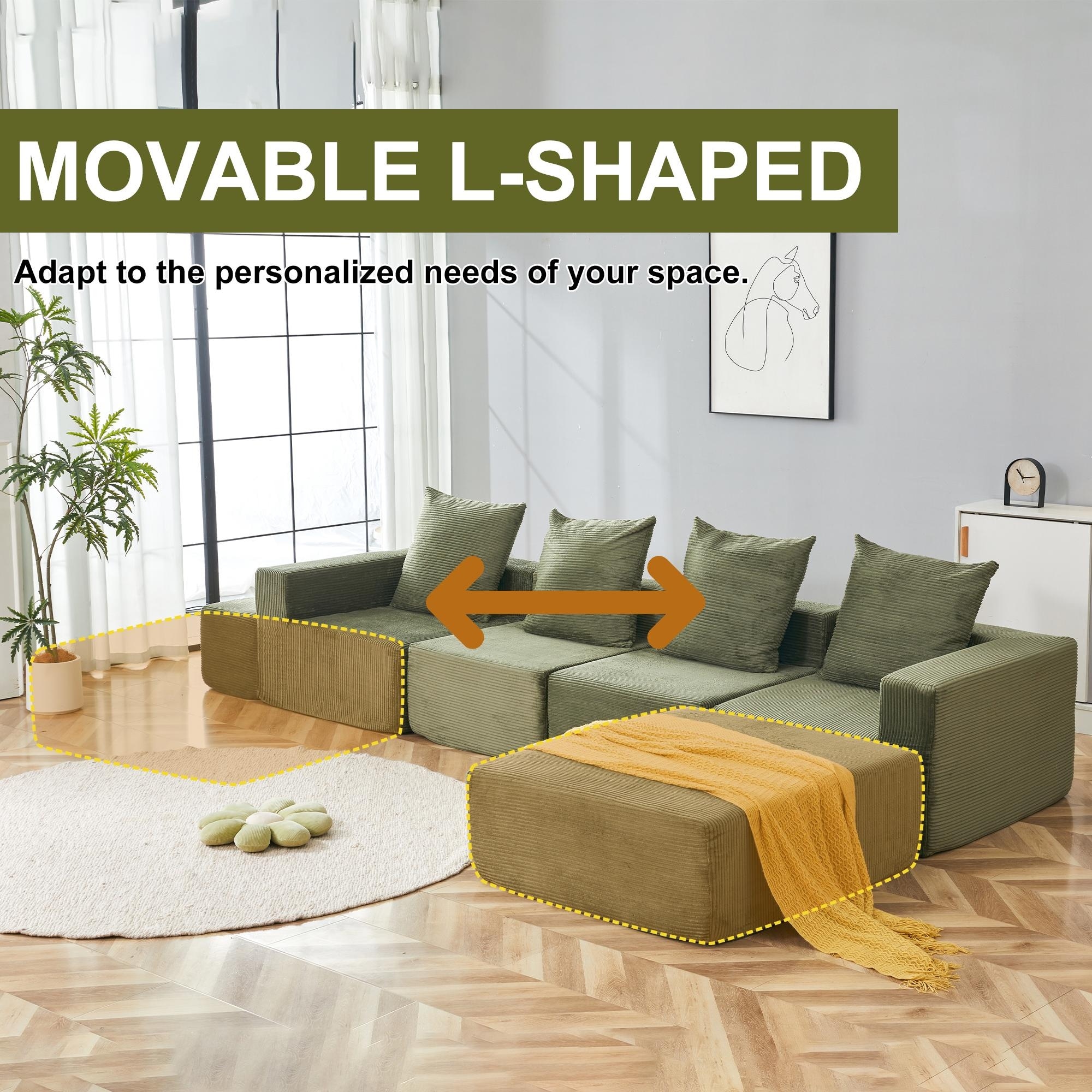 Corduroy Sleeper Sectional Sofa with Ottoman L-Shaped Modular Cloud Couch Free Combination Sofa Lounge 4-Seat