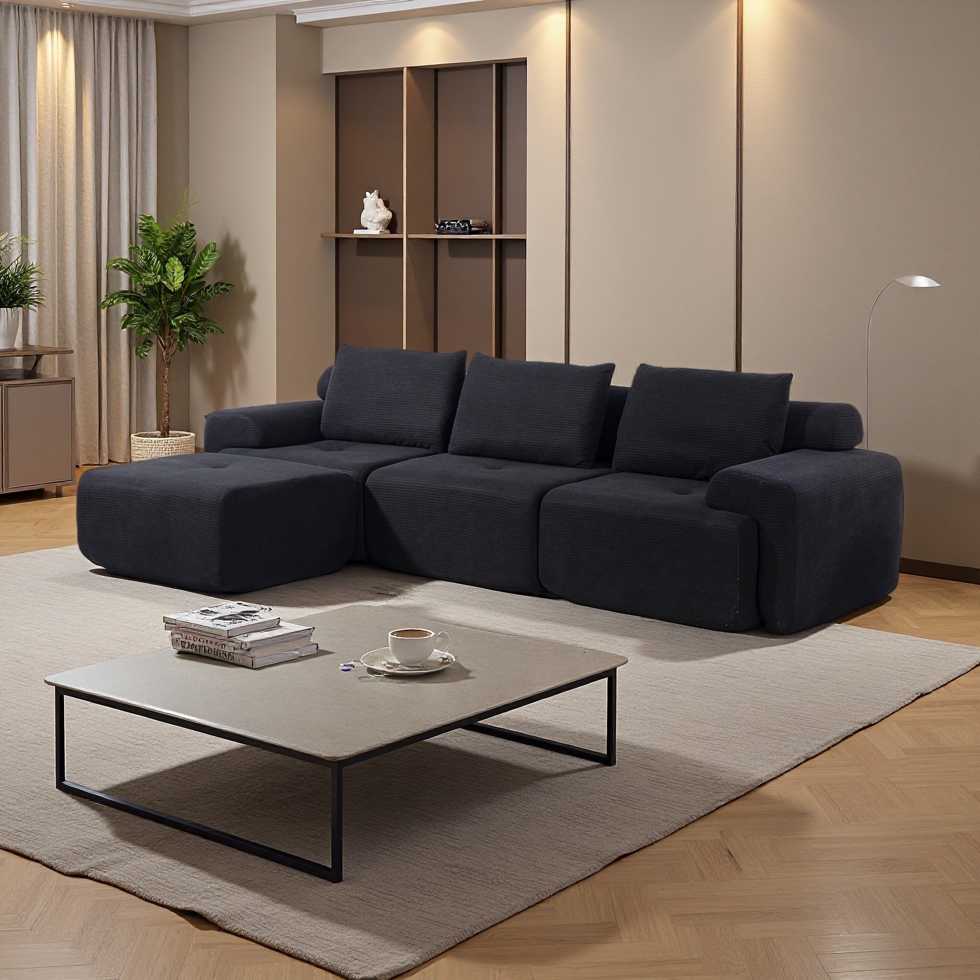Corduroy Modular Deep Seat Couch L-shaped Sectional Sofa with Ottoman