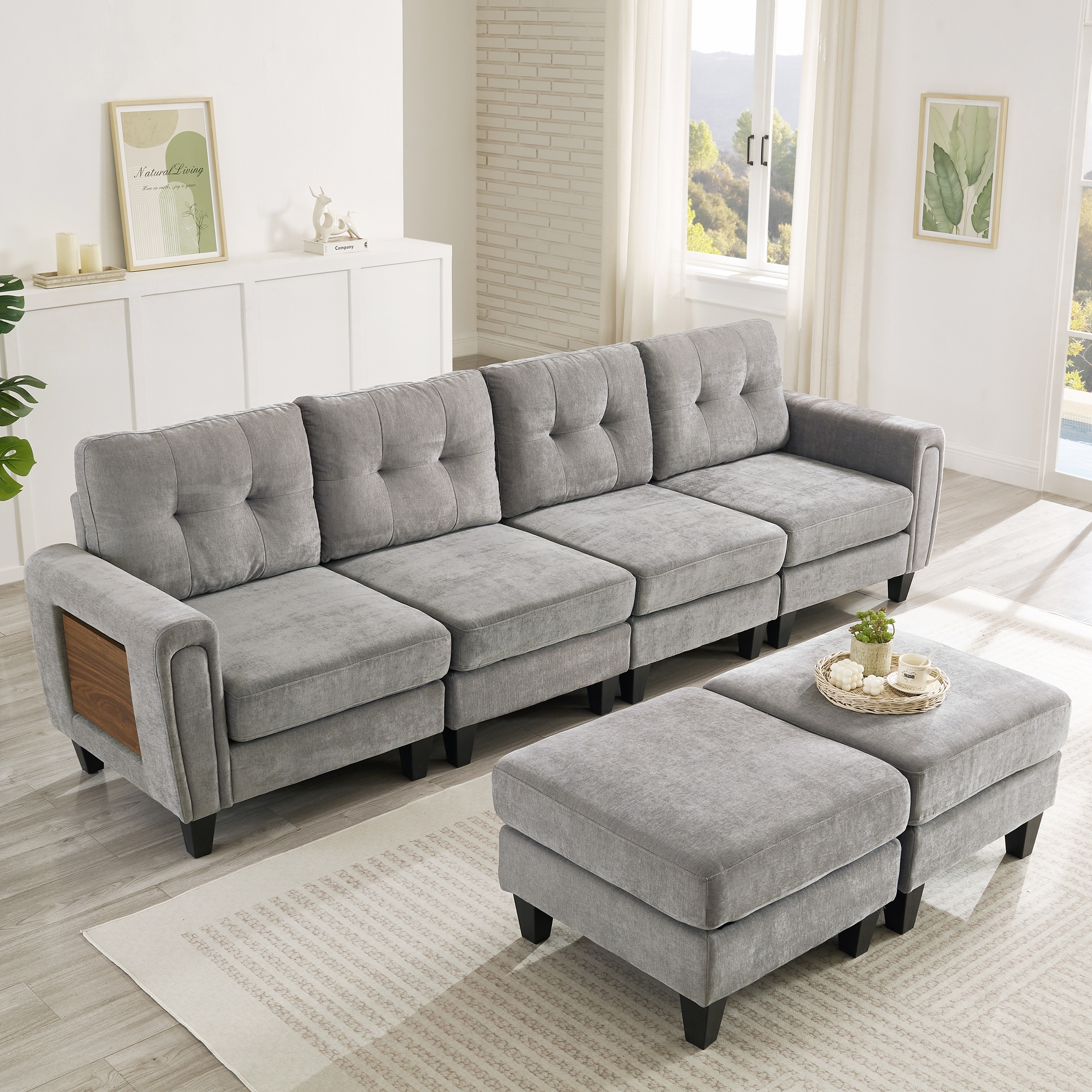 Homy Casa PMOB 107 in. Chenille L-Shaped Modular Sectional Sofa with Tufted Backrest and Ottoman