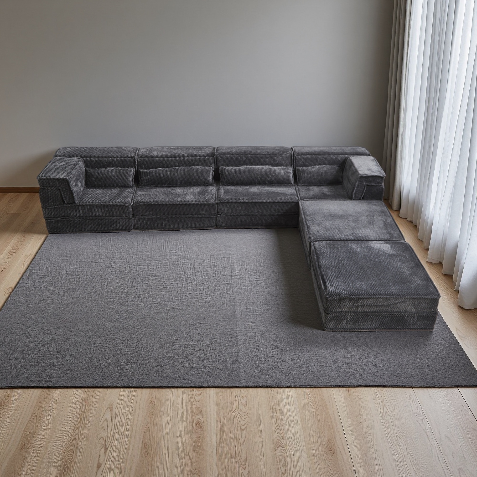 102" Corduroy 10-in-1 Convertible 4-Seat Sectional Sofa with 6 Pillows & Side Pockets