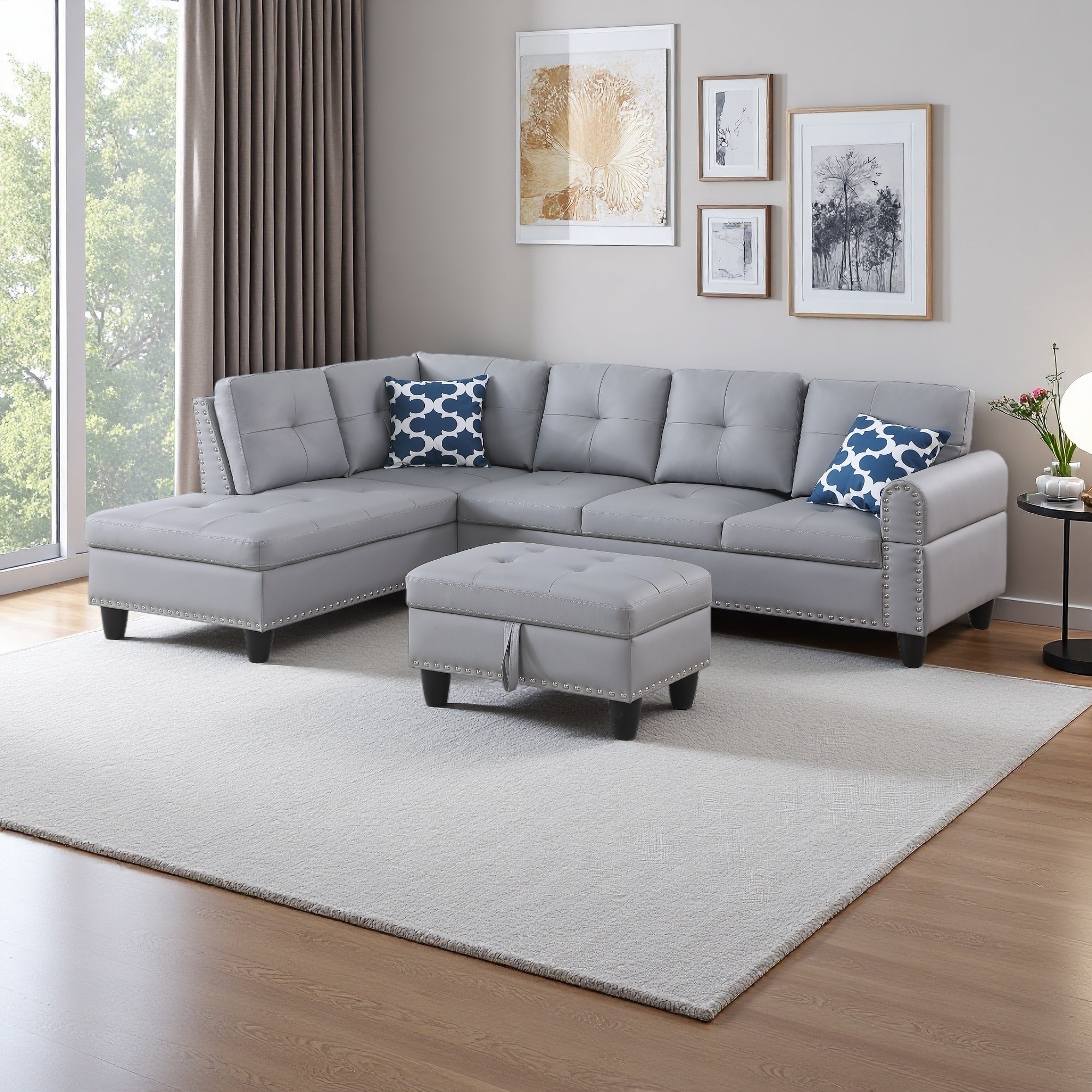 L Shape Sectional Sofa Deep Seat Loveseat Sofa Chaise Lounge w/ Ottoman