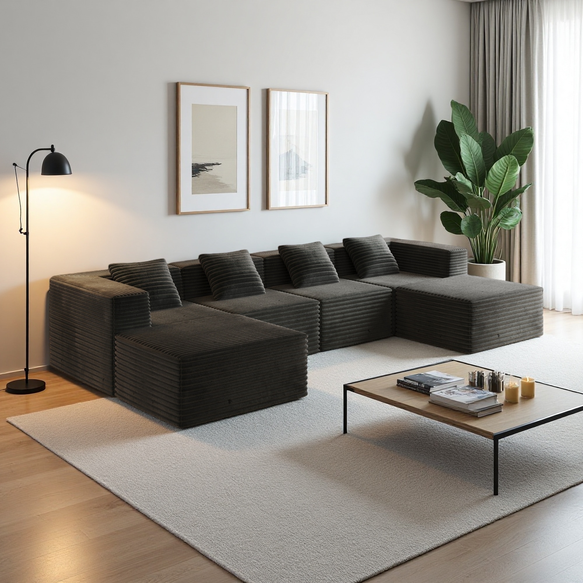 136.22" Corduroy Modular Sectional Sofa with Deep Seat, 2 Ottomans and No Assembly Required