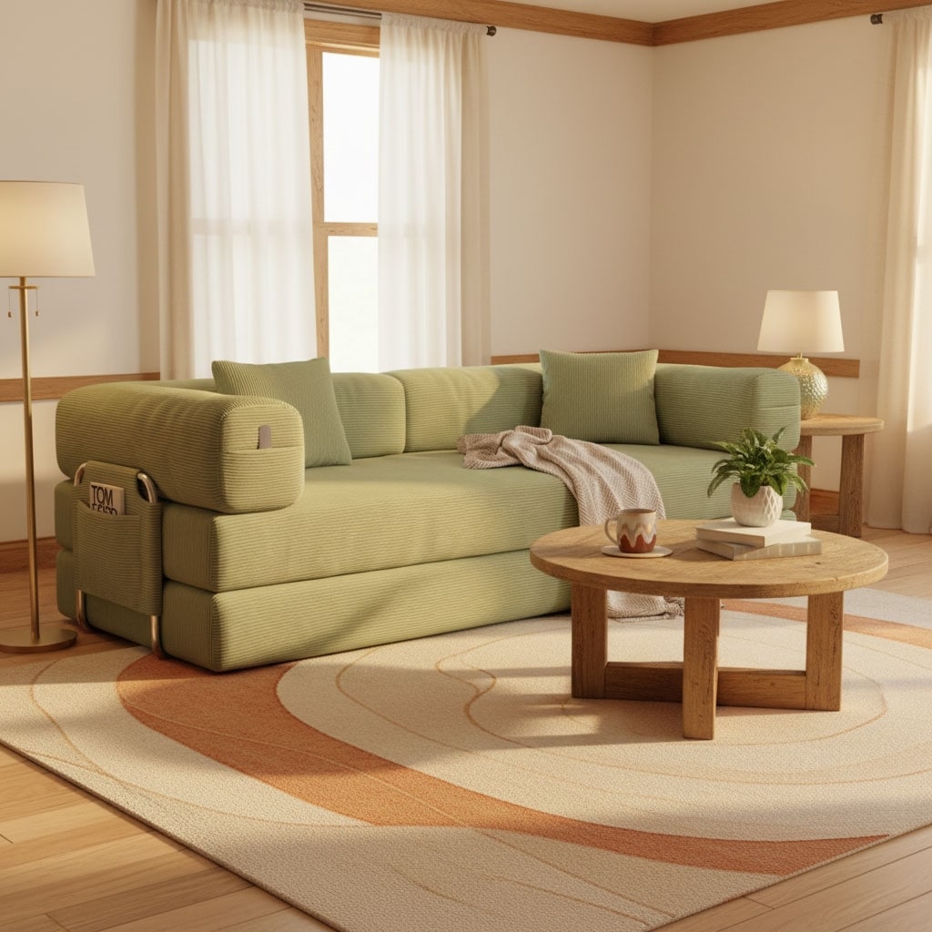 Convertible Floor Corduroy Sofa Bed, Foldable Mattress Cloud Couch for Space Saving