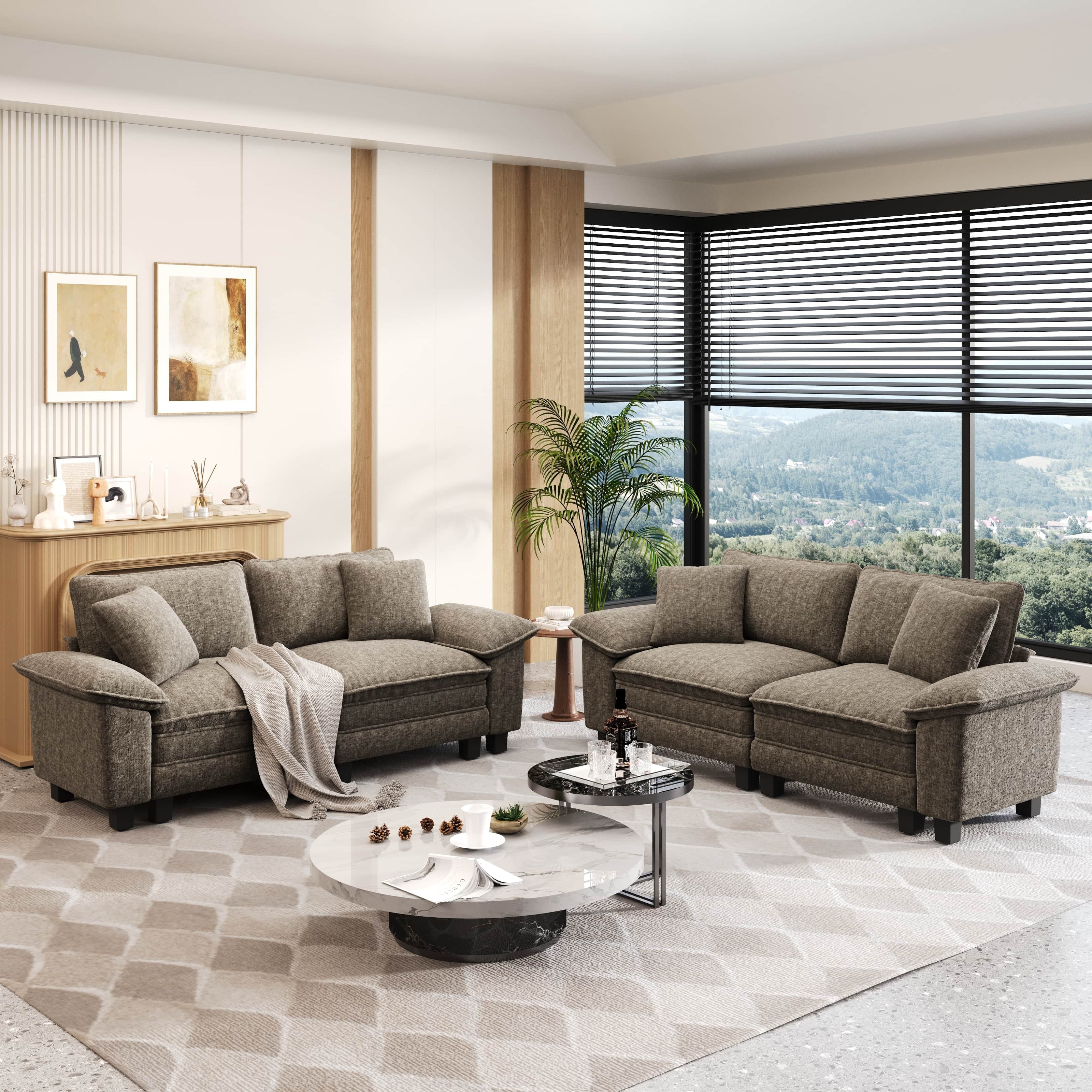 MAISON ARTS 2-Piece Chenille & Corduroy Sofa Set, Comfy 3/4/5-Seater Modular Loveseat & Armchair with Throw Pillows