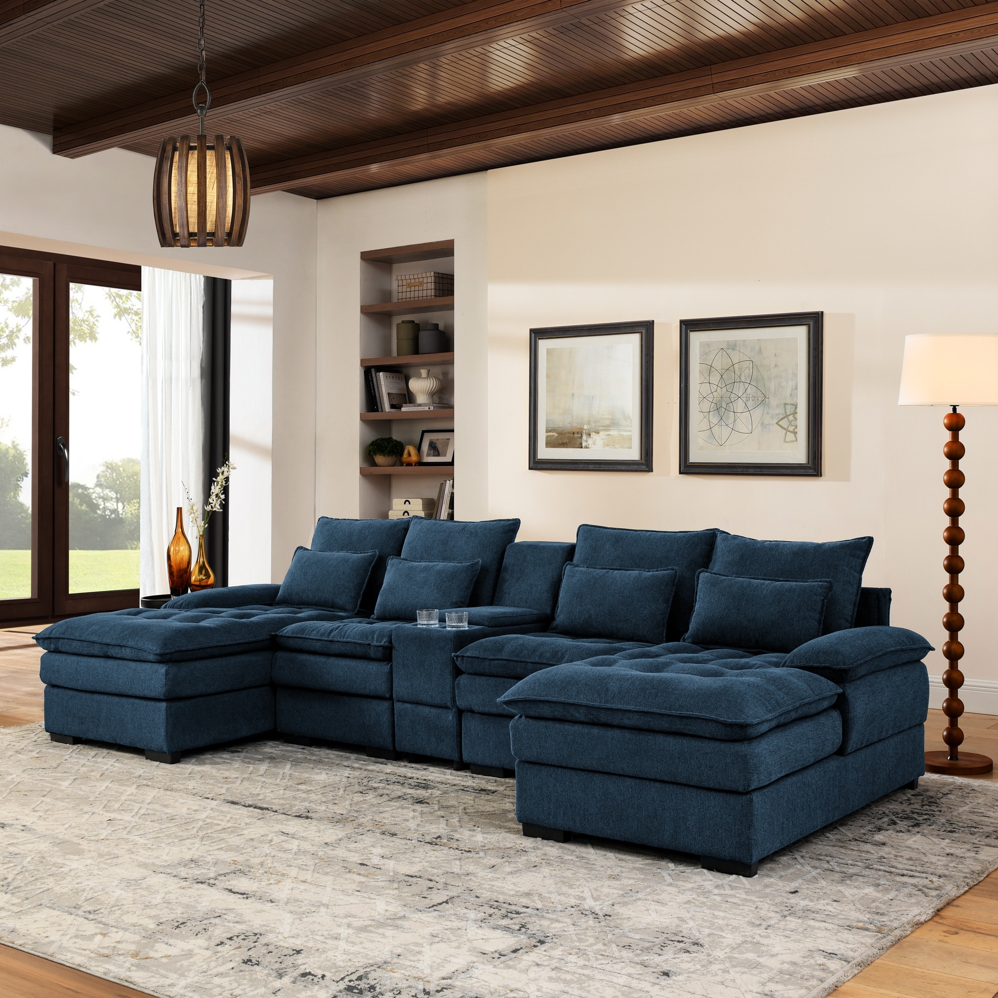 121.5" Chenille U-Shaped 6-Seater Sectional Sofa with 2 Movable Ottomans and 6 Pillows