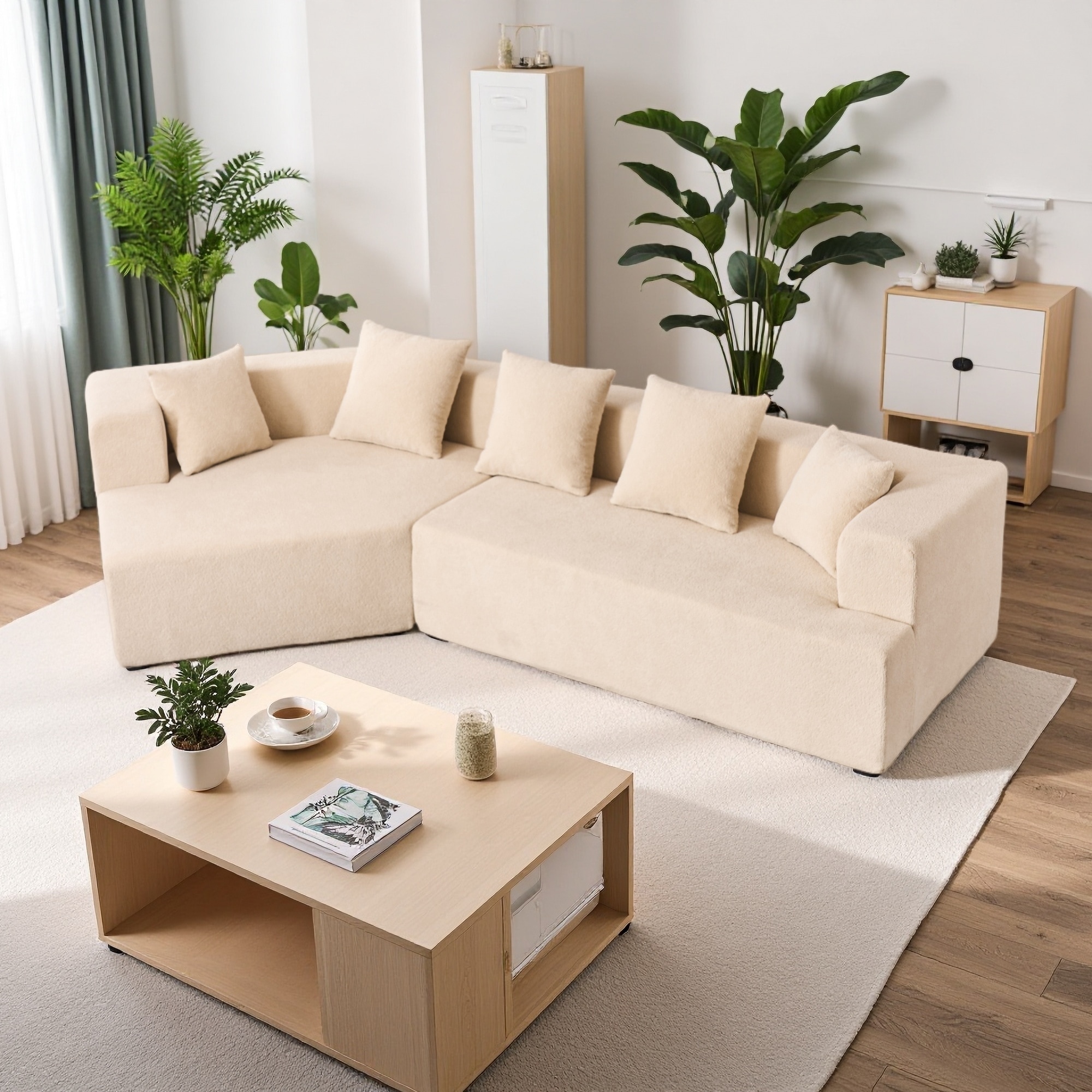 Modular L-Shaped Sectional Sofa with Premium Corduroy Upholstery and Flexible Layout for Living Room or Apartment