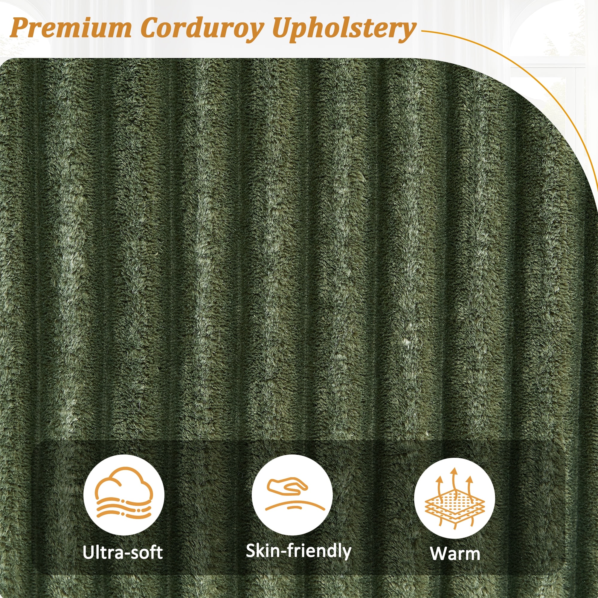 88.58" Corduroy 3-Seat Sofa with 4 throw pillows and Pull-Out Chaise and Built-In Tea Tray for Living Rooms or Guest Spaces