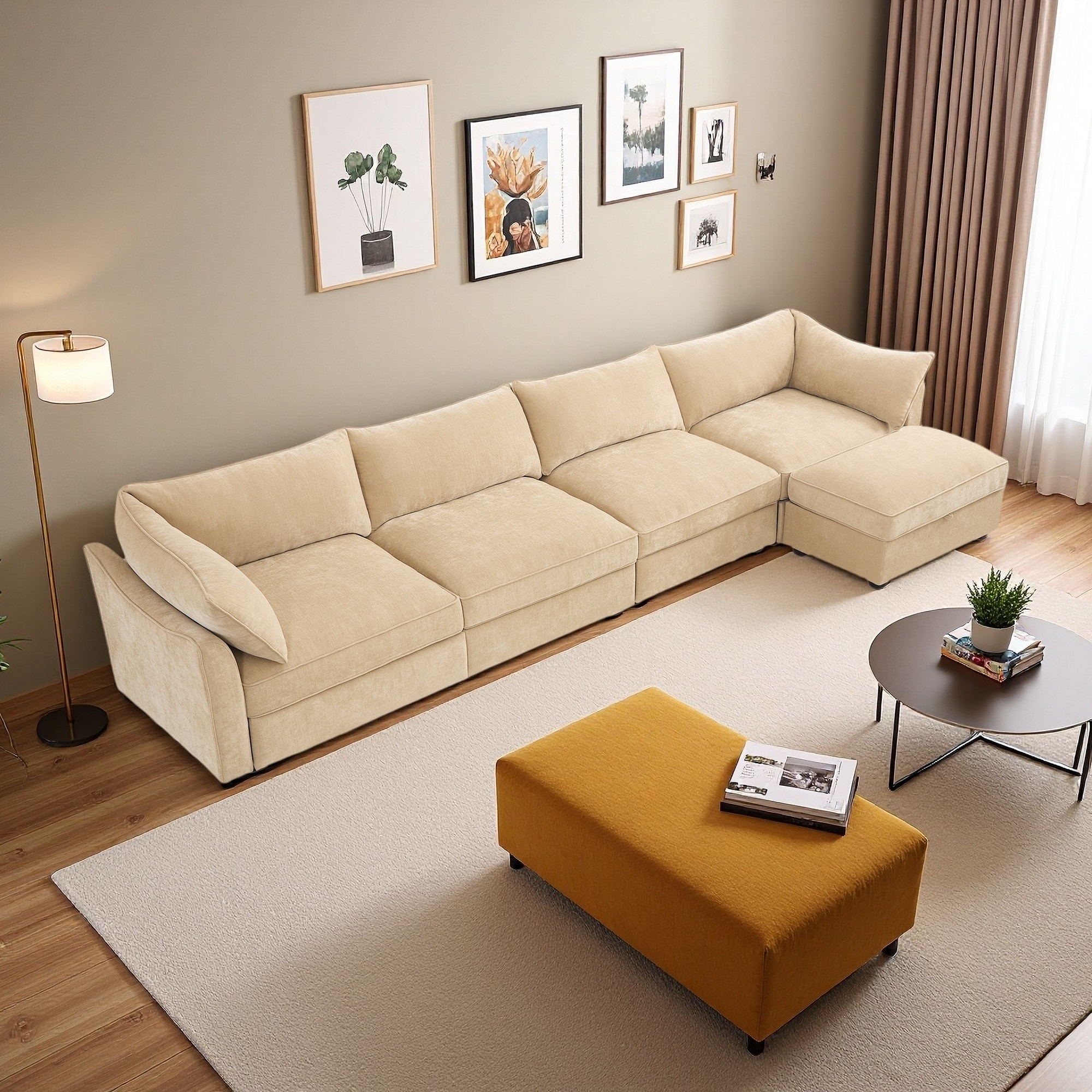 146.4" Chenille L-Shaped 4-Seater Sectional Sofa with Ottoman & Under-Seat Storage