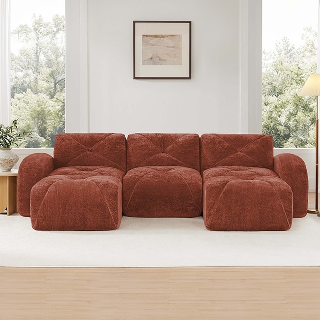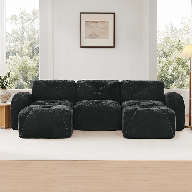 U-Shaped Tufted Boneless Sofa – 32D High-Density Sponge, Free Combination & Movable Ottomans, No Assembly Required.
