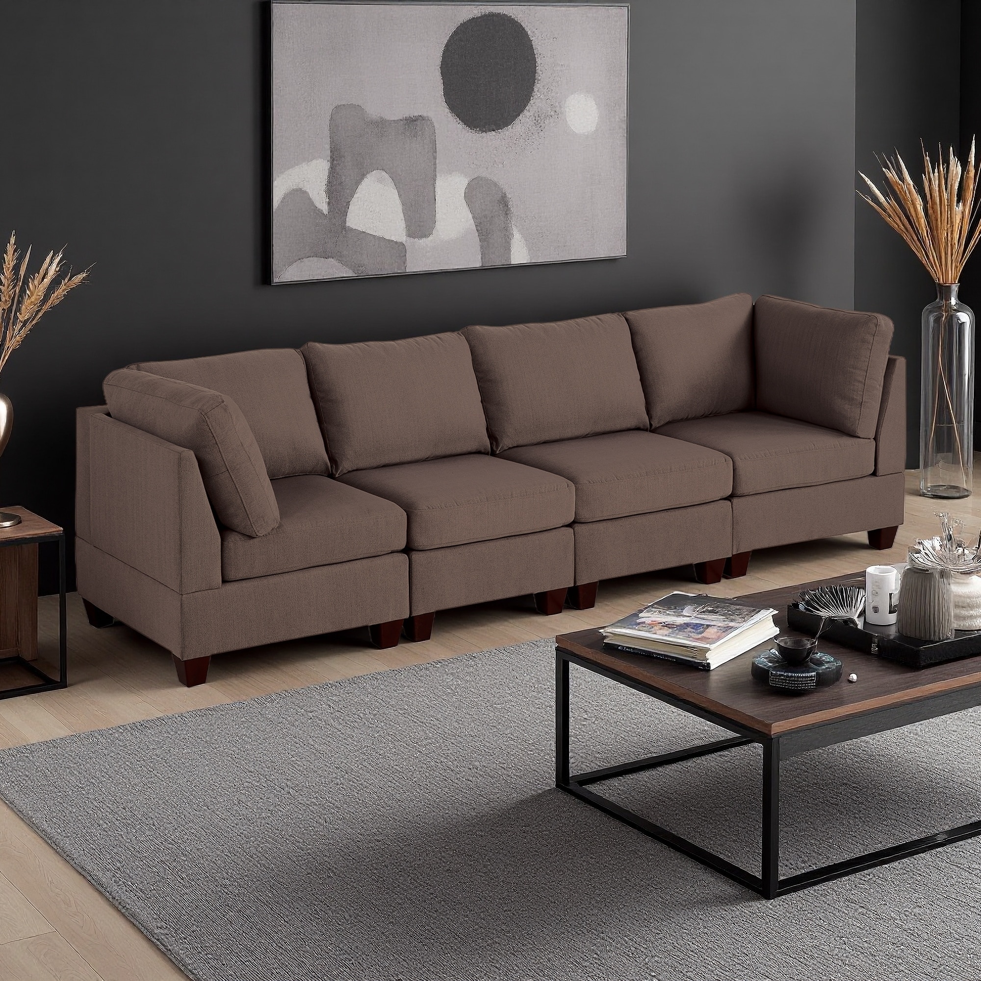 Fabric Modular Corner Sectional Sofa & Armless Chair Set (4 Pieces)