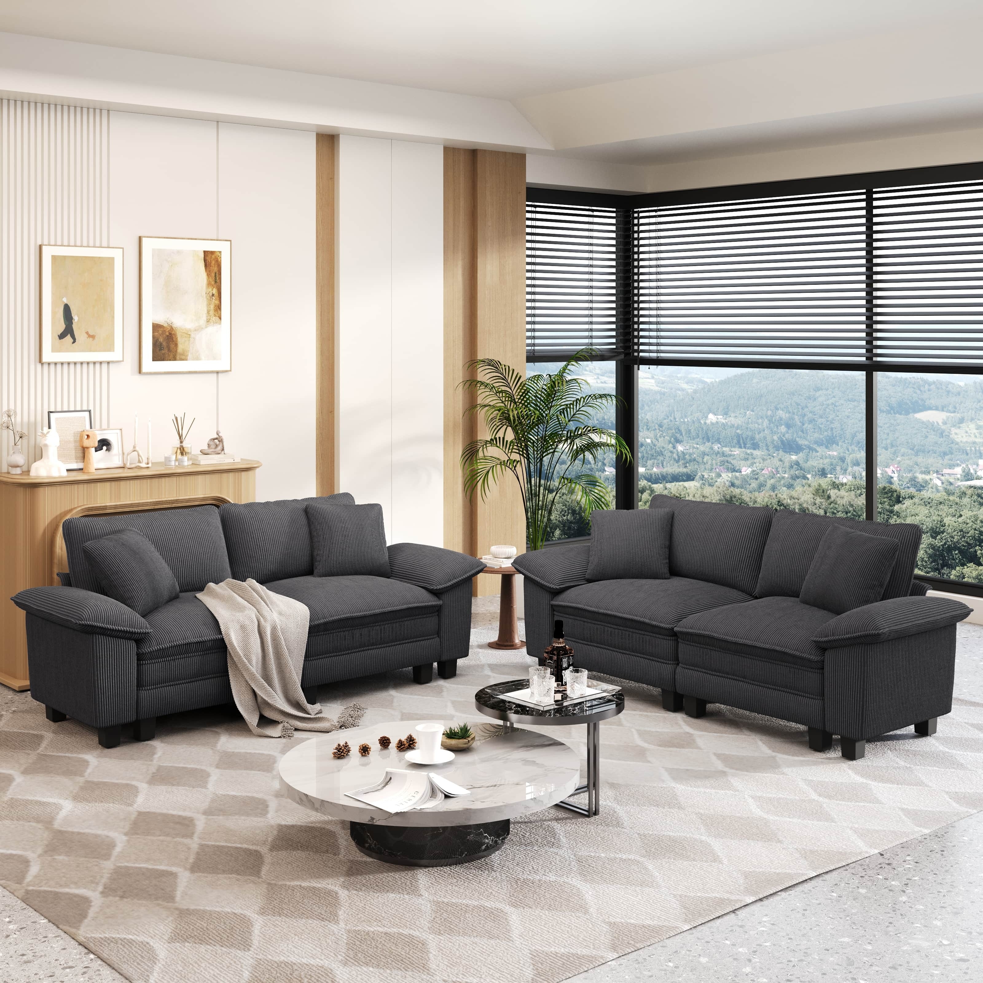 Modern Corduroy Cloud Modular Sectional Sofa with Upholstered 4-Seater Sofa for Living Room