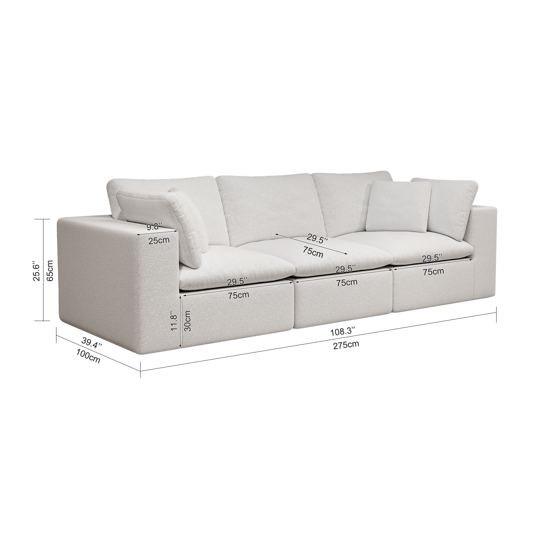 108.3×39.4" Modular Sectional Sofa, 3-PC, Corduroy, White
