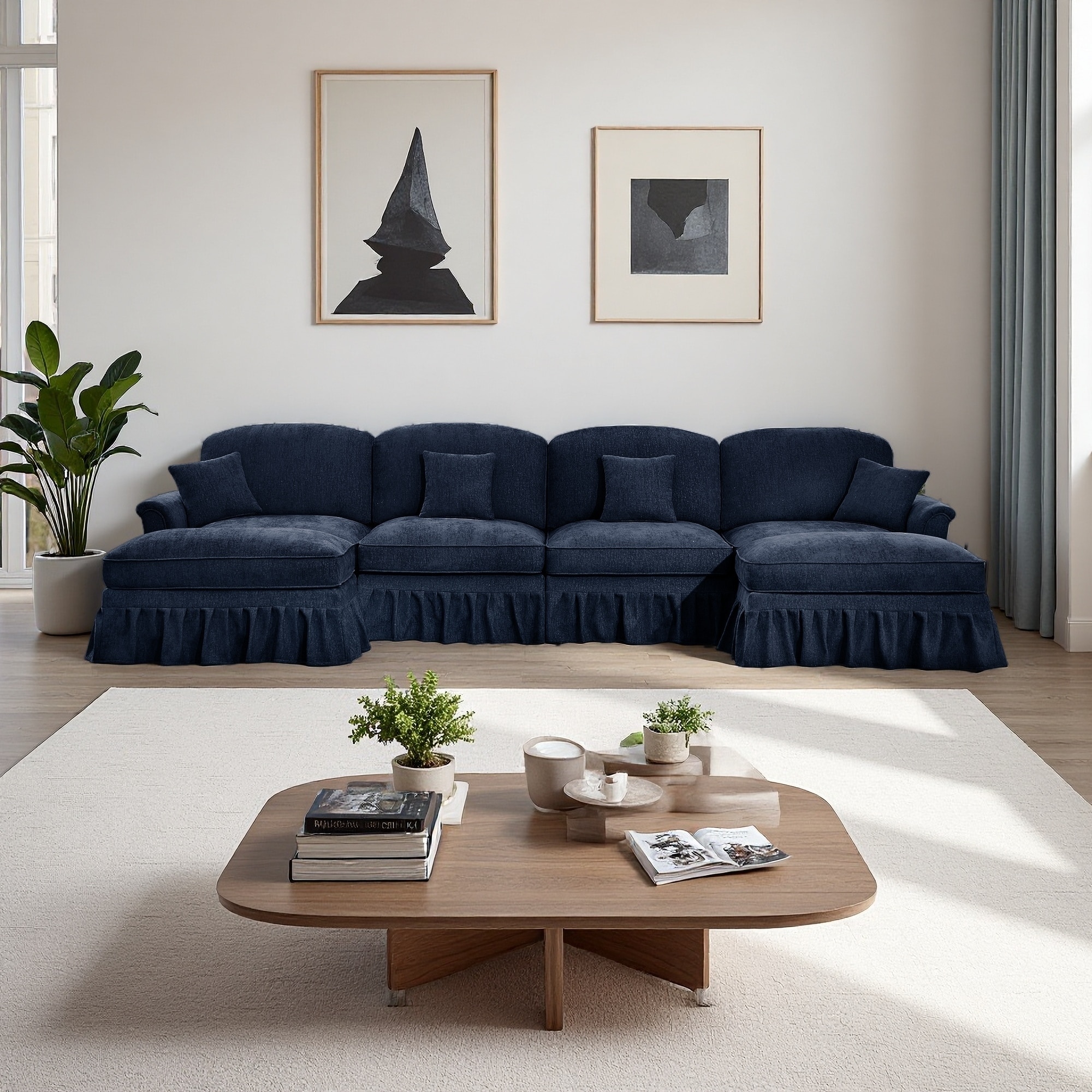 137.8" Chenille U-Shaped 4-Seater Modular Sectional Sofa with Flared Arms, Skirt & Movable Ottomans