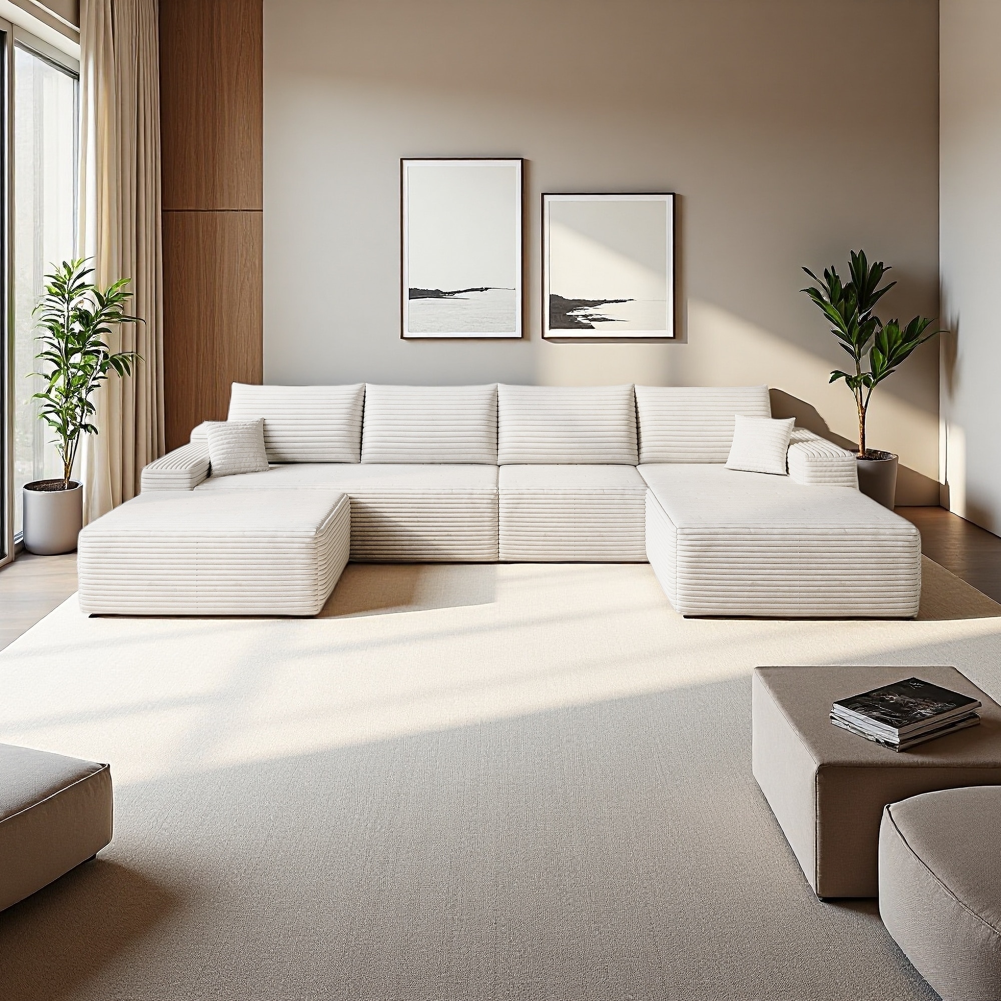 135" Plush Corduroy U-Shaped Sectional Sofa with Ottoman & Right Chaise
