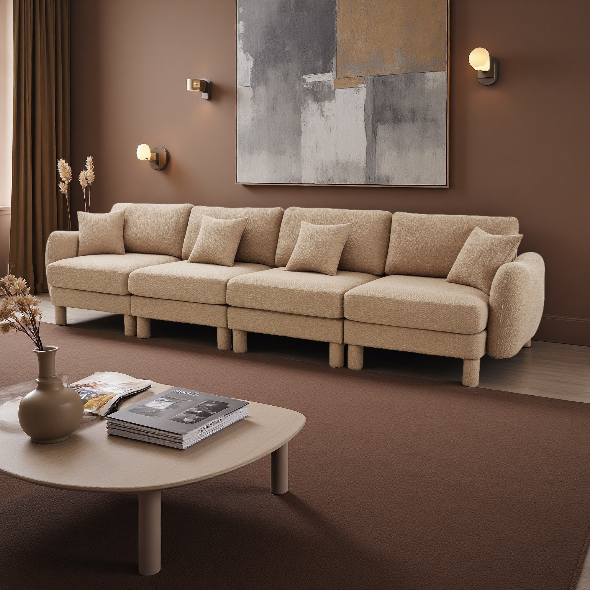 141" Boucle Sectional Sofa with Shell-shaped Armrests and Self-Wrapped Cylindrical Legs (4-Seater)