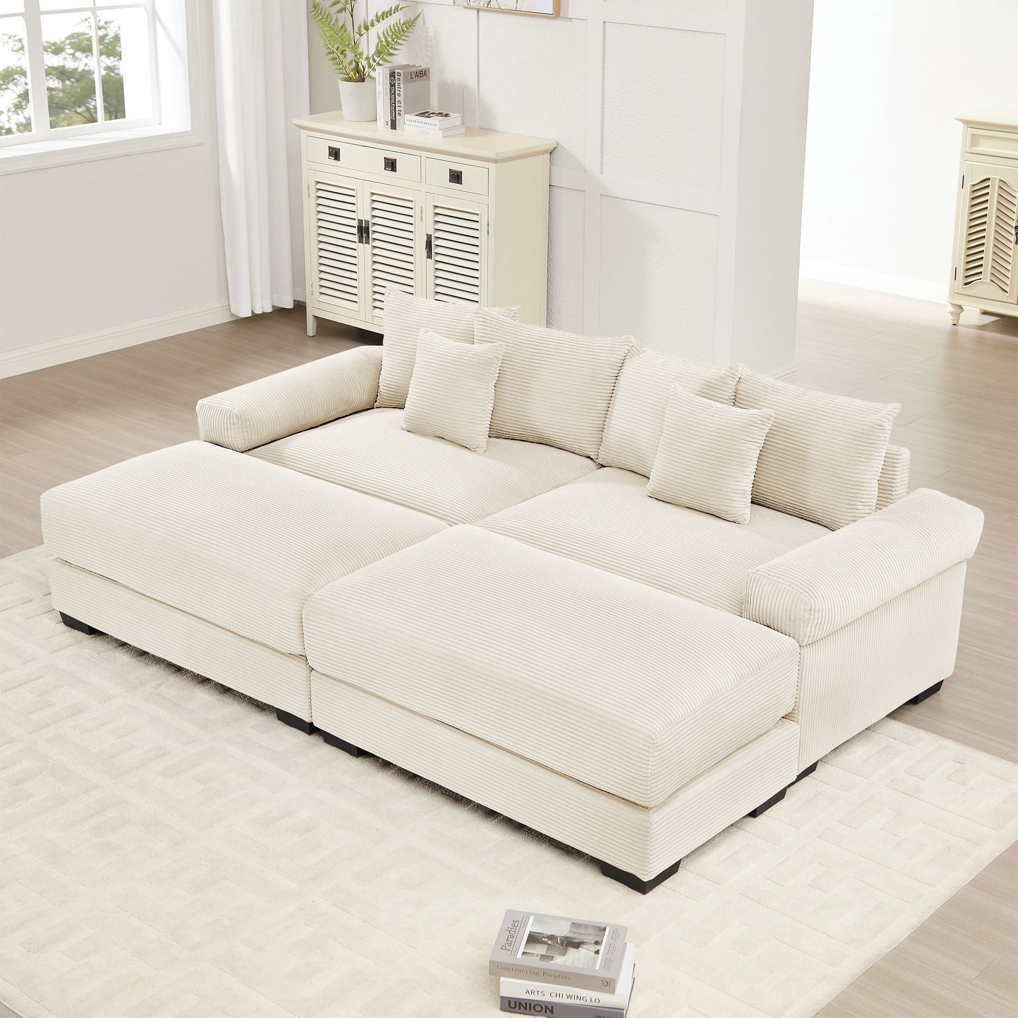 86.6" Oversized Double Chaise Lounge Sofa Chair, Modern Sectional Cloud Couch, Corduroy Upholstered Floor Loveseat Sleeper Bed