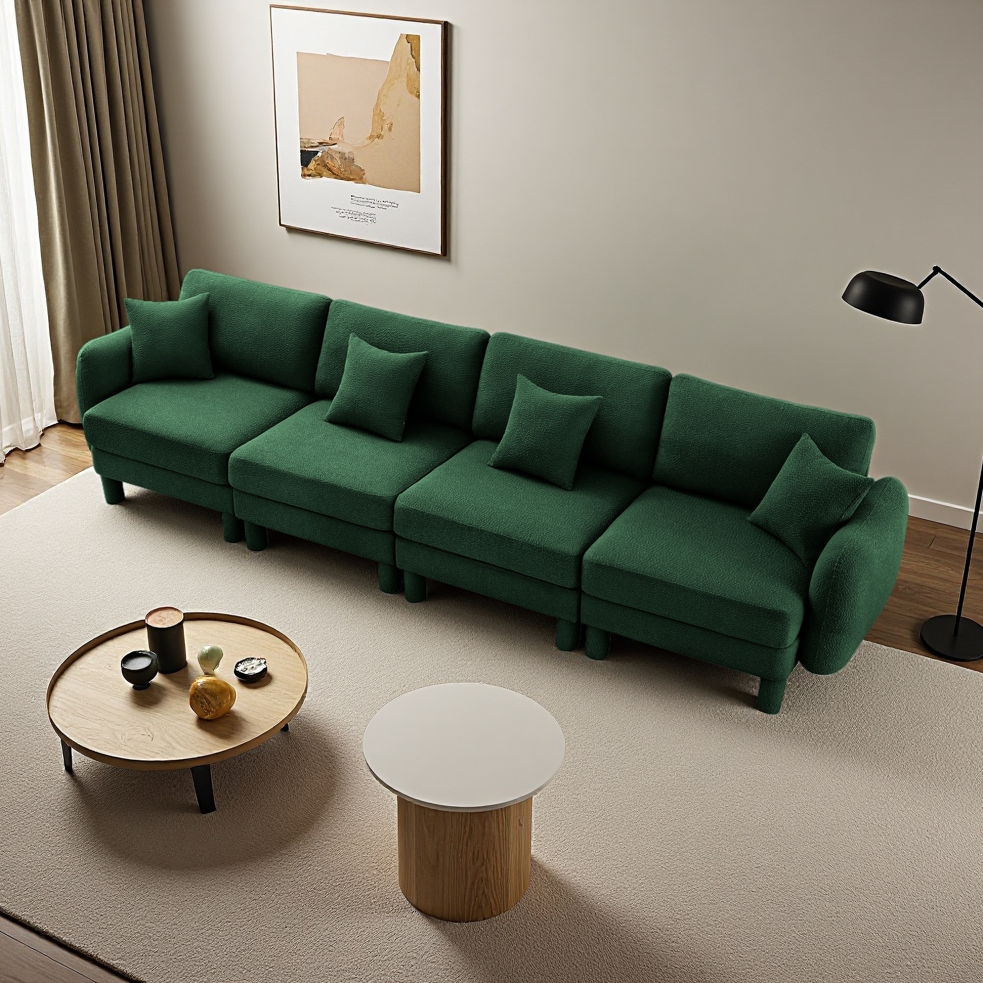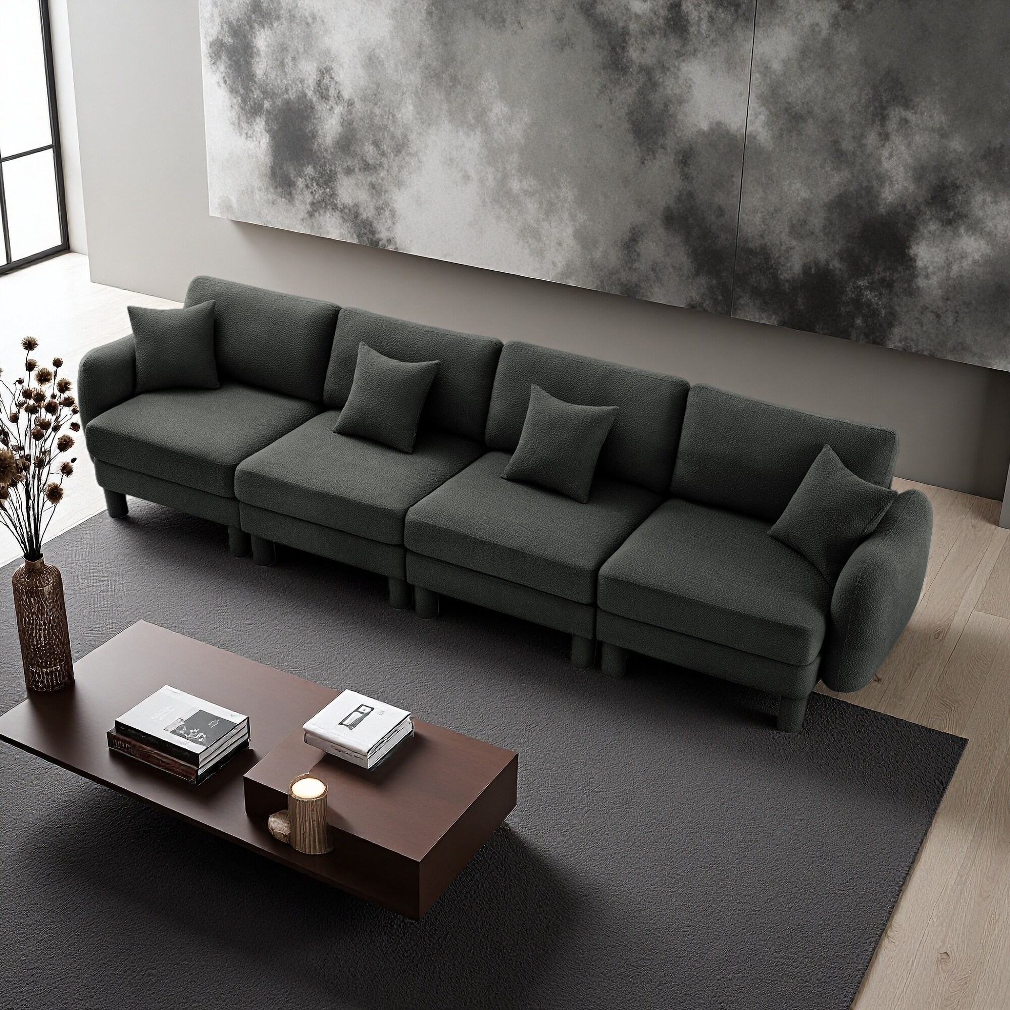 141" Boucle Sectional Sofa with Shell-shaped Armrests and Self-Wrapped Cylindrical Legs (4-Seater)