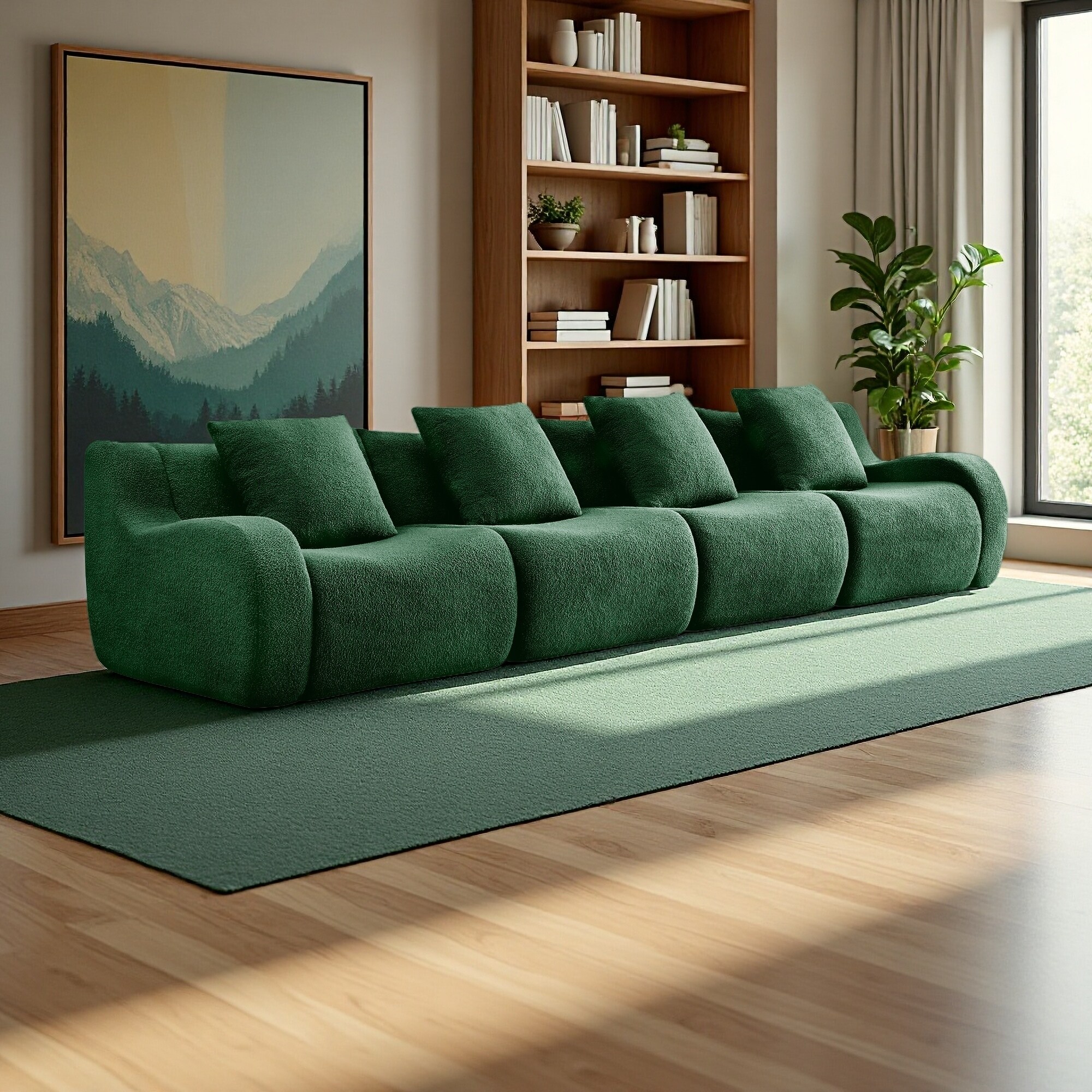 148" Teddy Fabric Modular Sofa with No Assembly Required, Curved Armrest and Anti-Slip Design