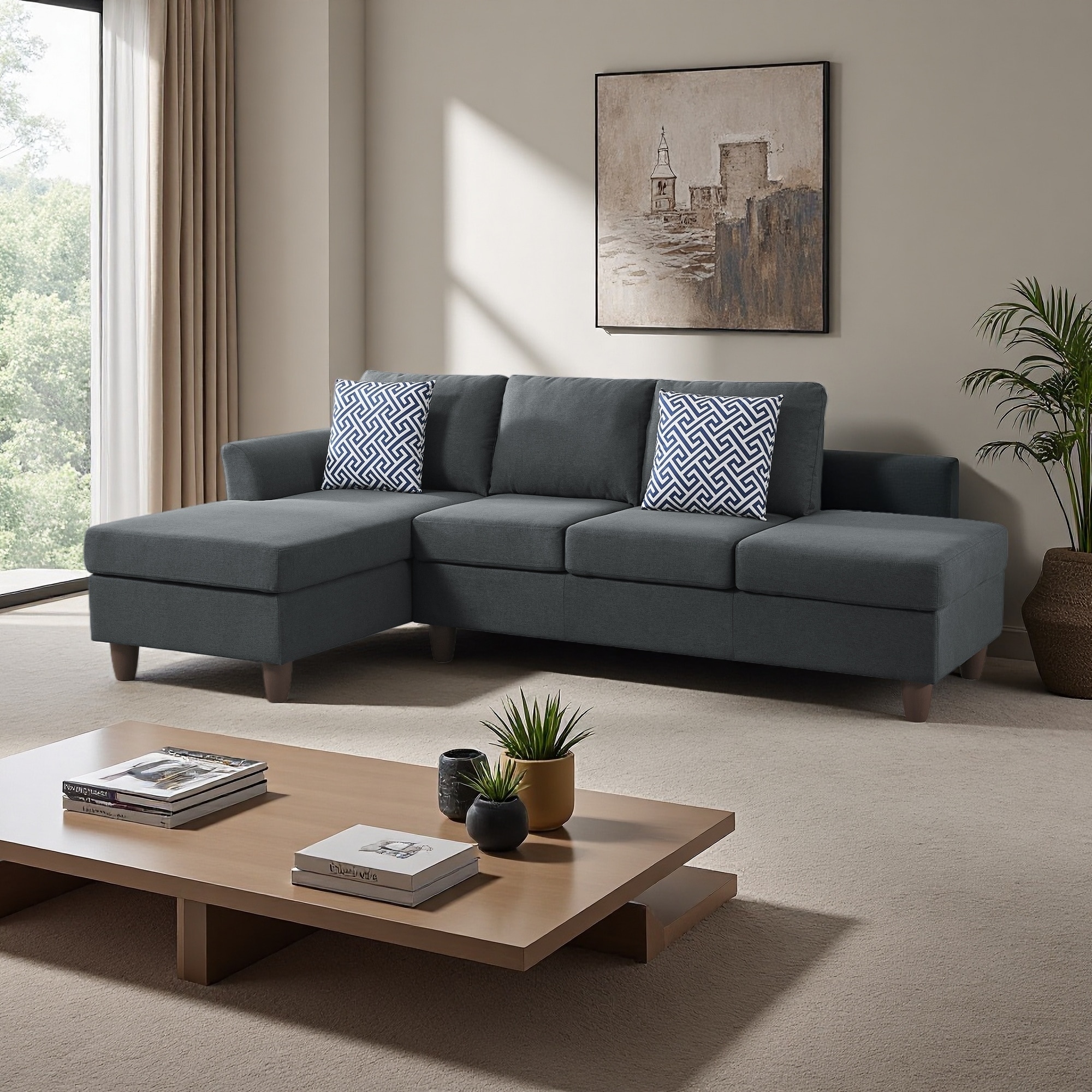 97" Linen Modular 4-Seater Sectional Sofa with Hidden Storage and Matching Accent Pillows