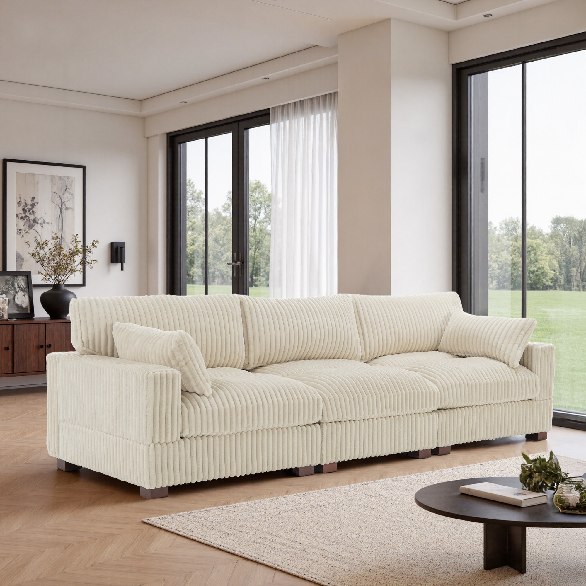Corduroy Modular Sectional Sofa Set With Ottoman