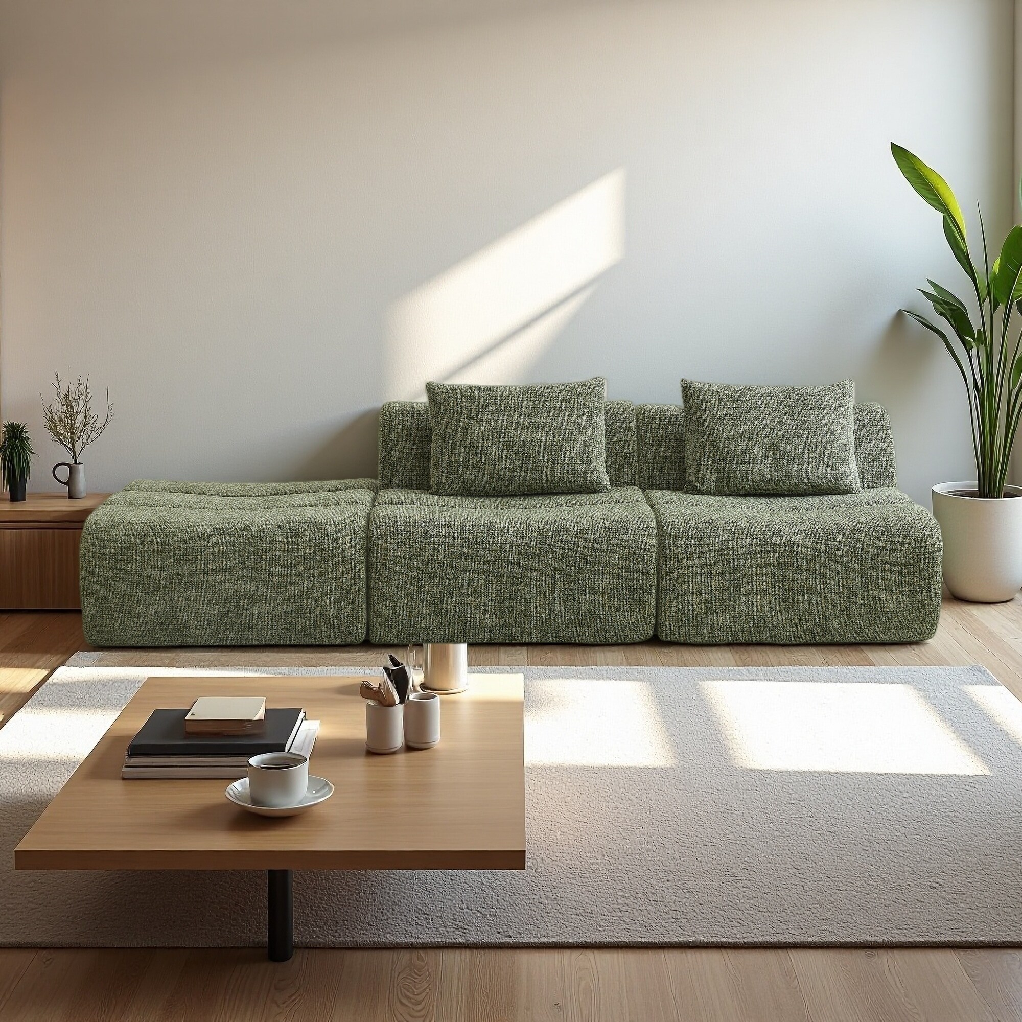 Plush Flannel Modular Sectional Sofa for Living Room