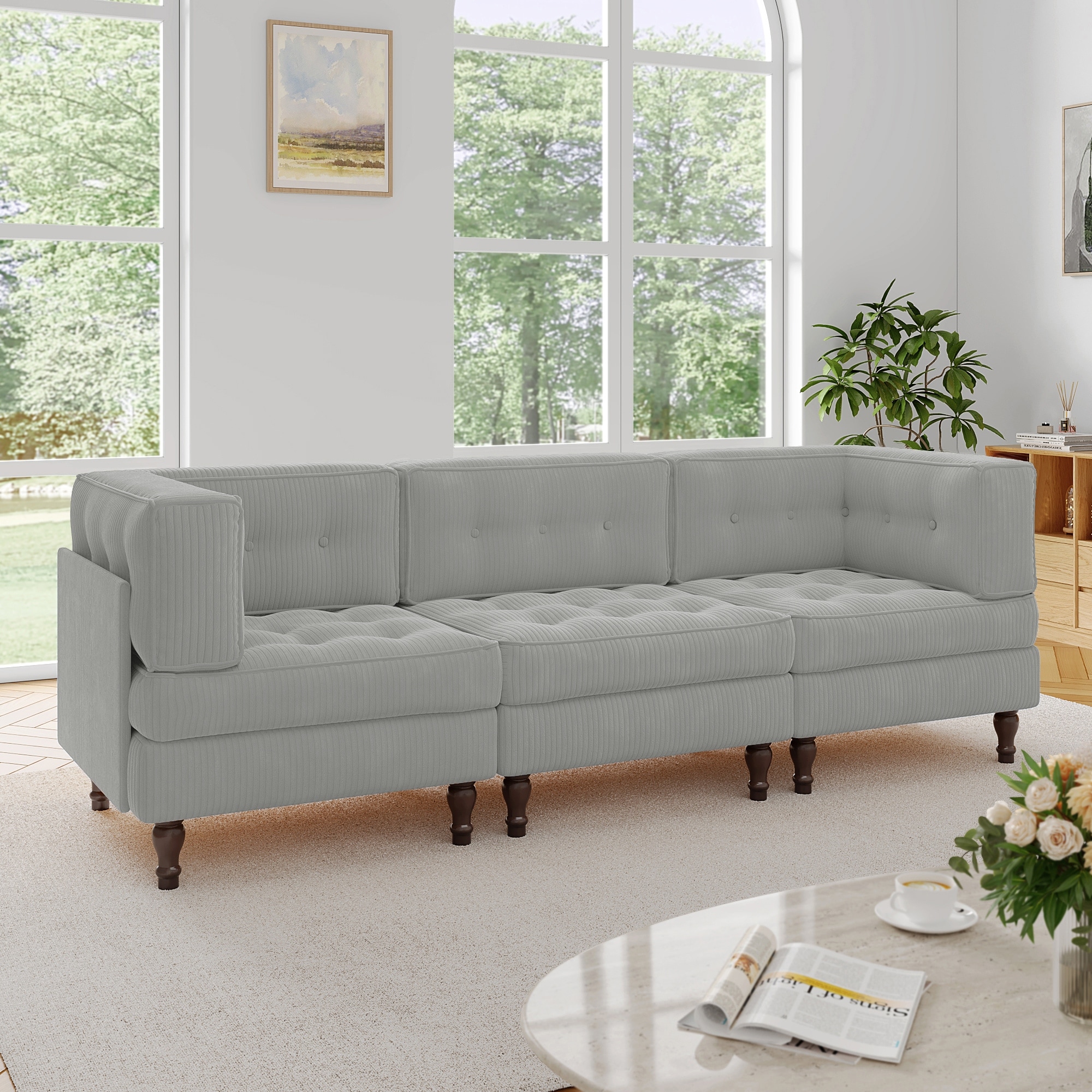 Corduroy Modular Sectional Sofa Set