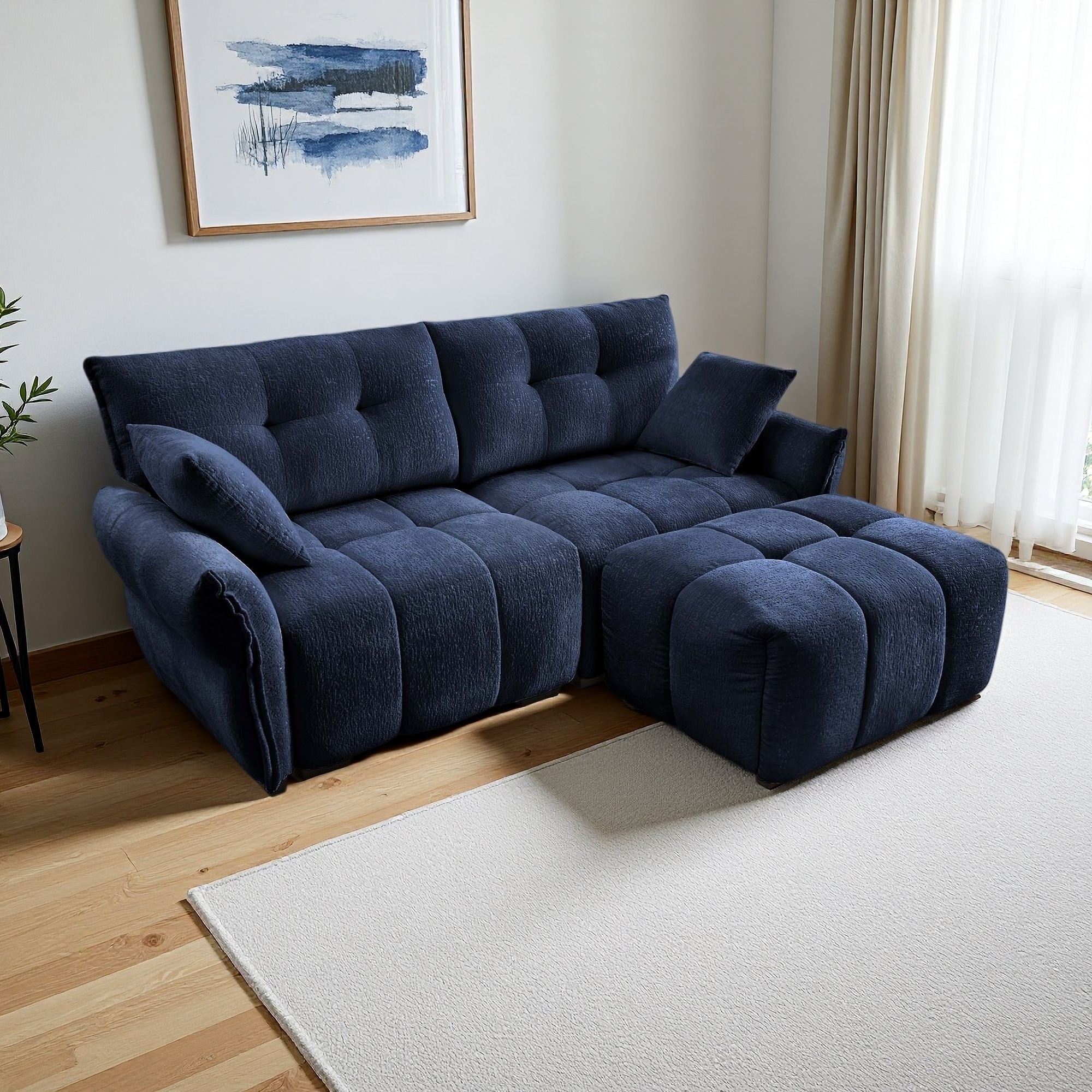 L Shaped Fully Compressed Cloud Floor Sofa, Chenille Deep Seat Sectional Sofa with Removable Ottoman, No Assembly Required