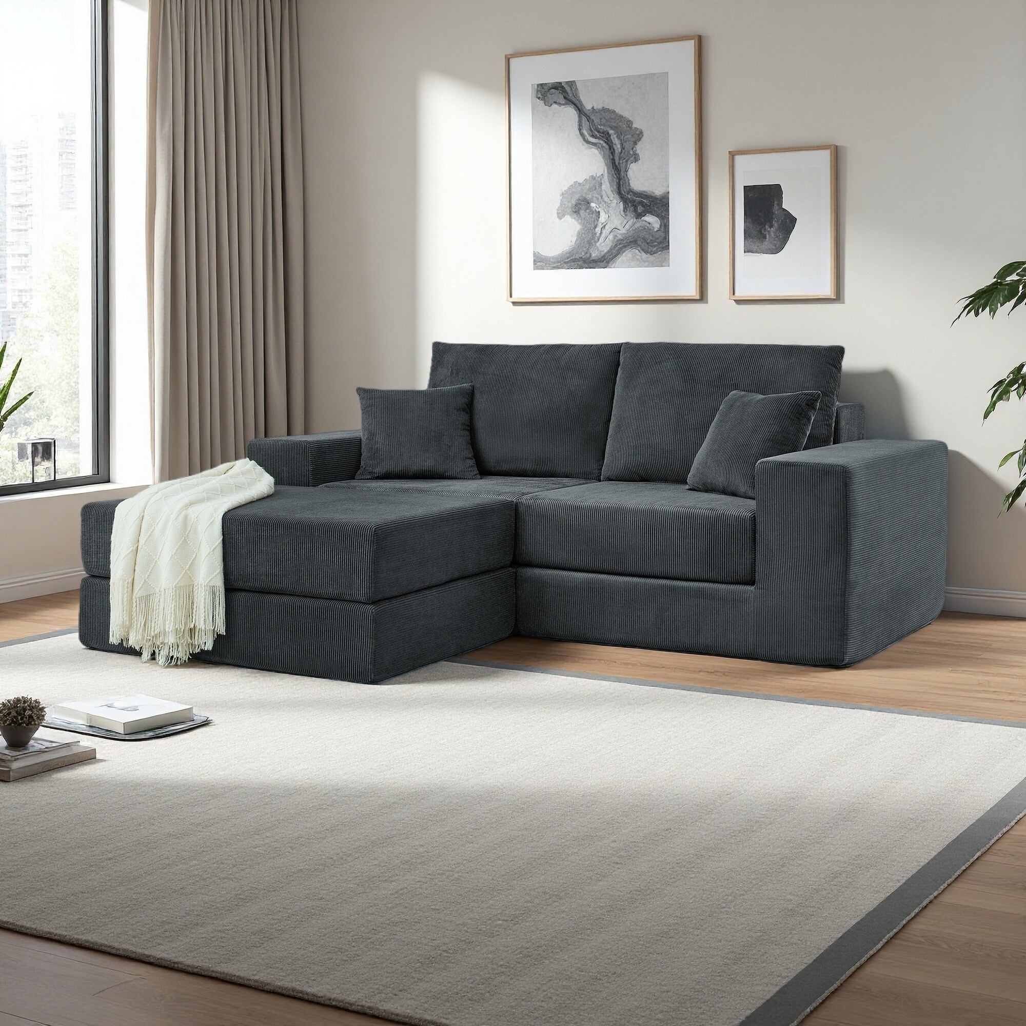 79.5" Corduroy L-Shaped Cloud Sectional Sofa with Removable Ottoman, Deep Seat & Pillows