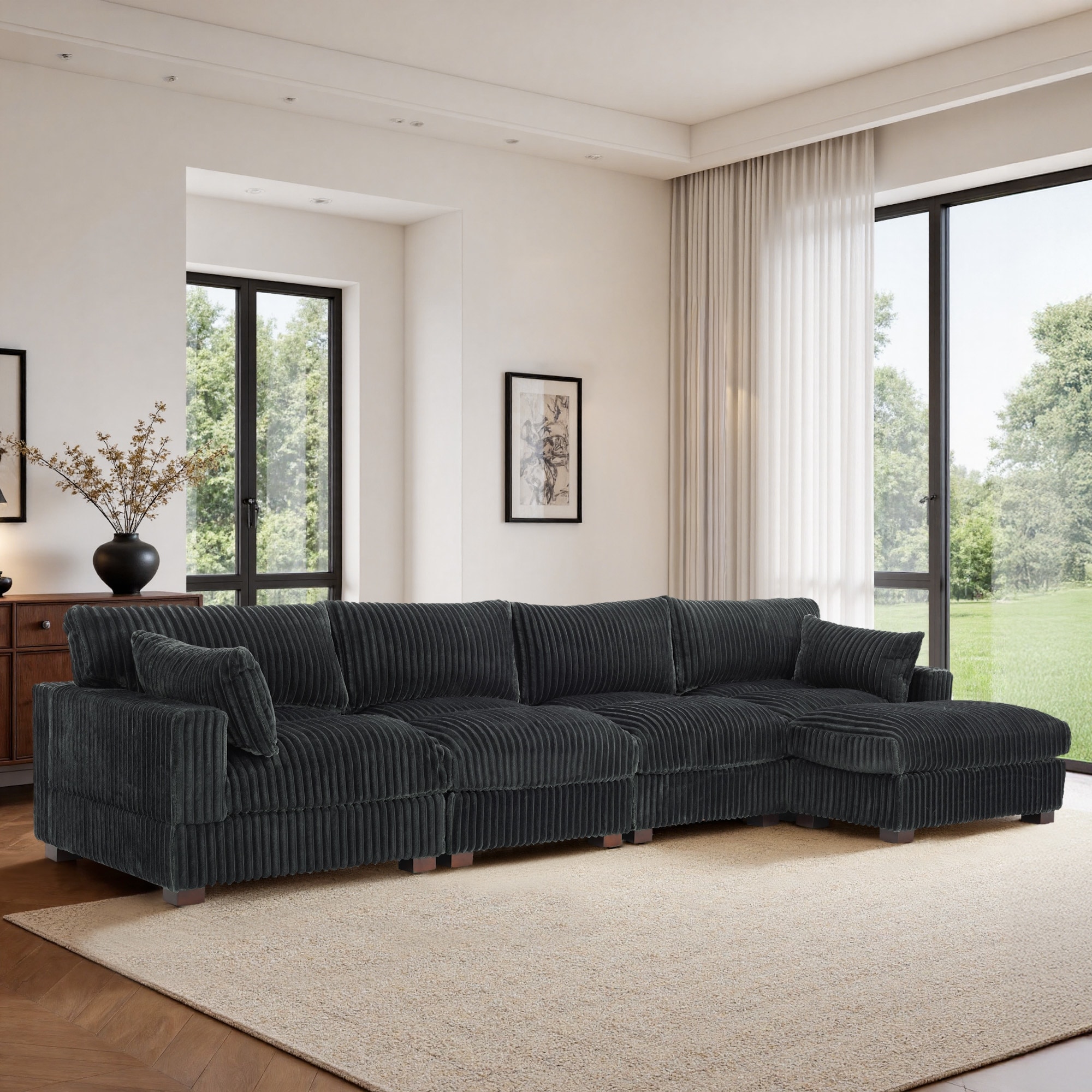 Oversized Upholstered Modular Sectional Chaise Lounge with Pillows