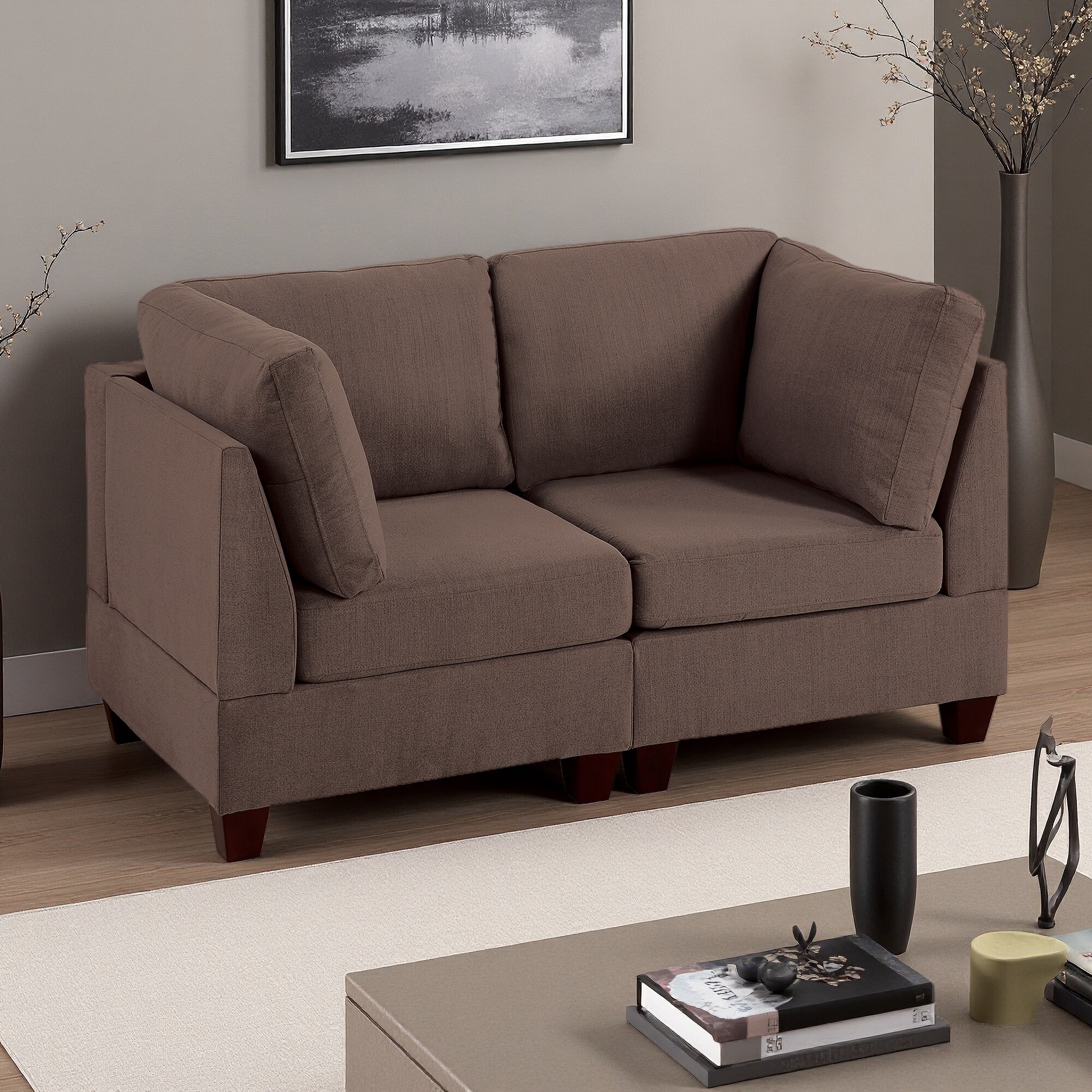 Chenille Armless Modular Corner Sofa with Wood Frame (Set of 2)
