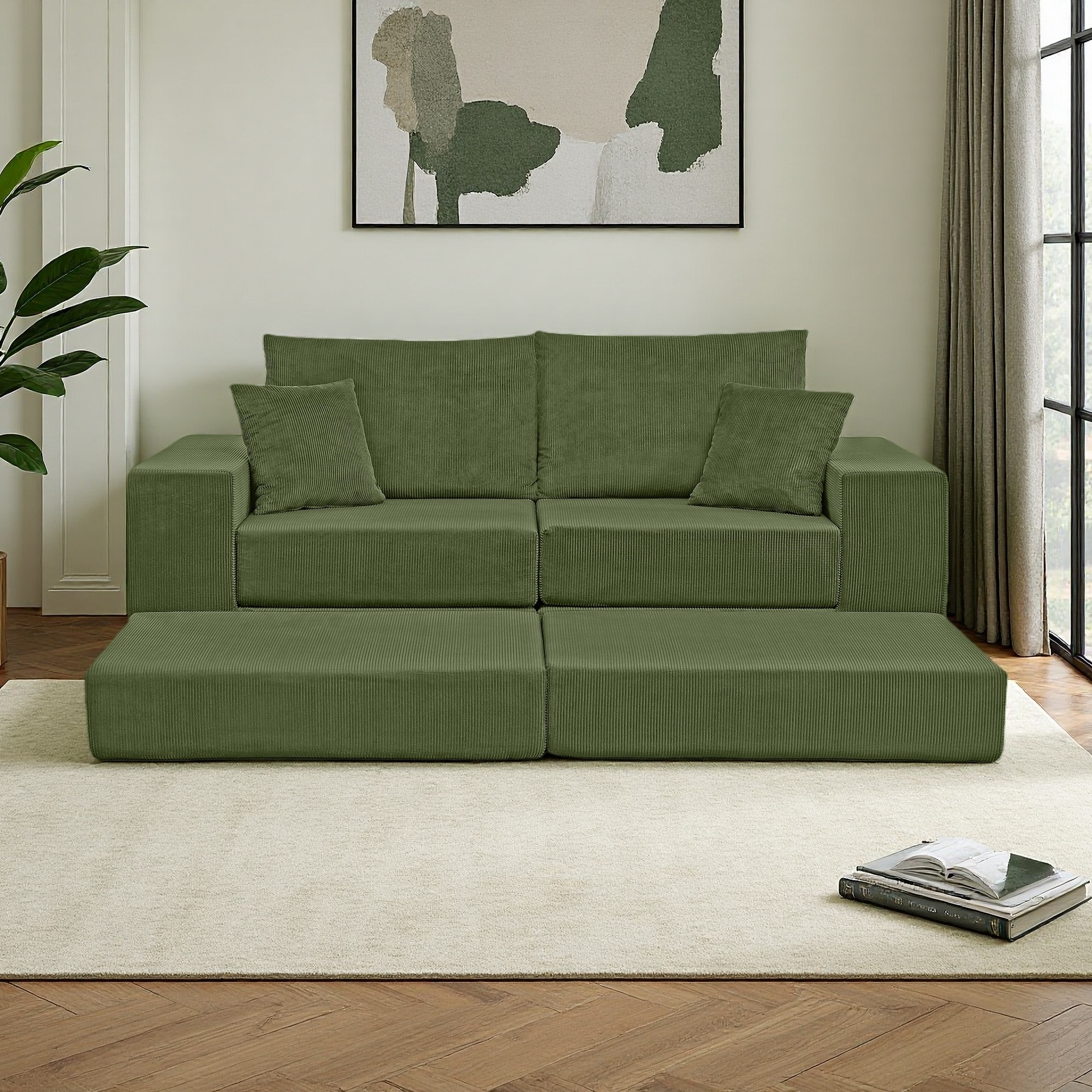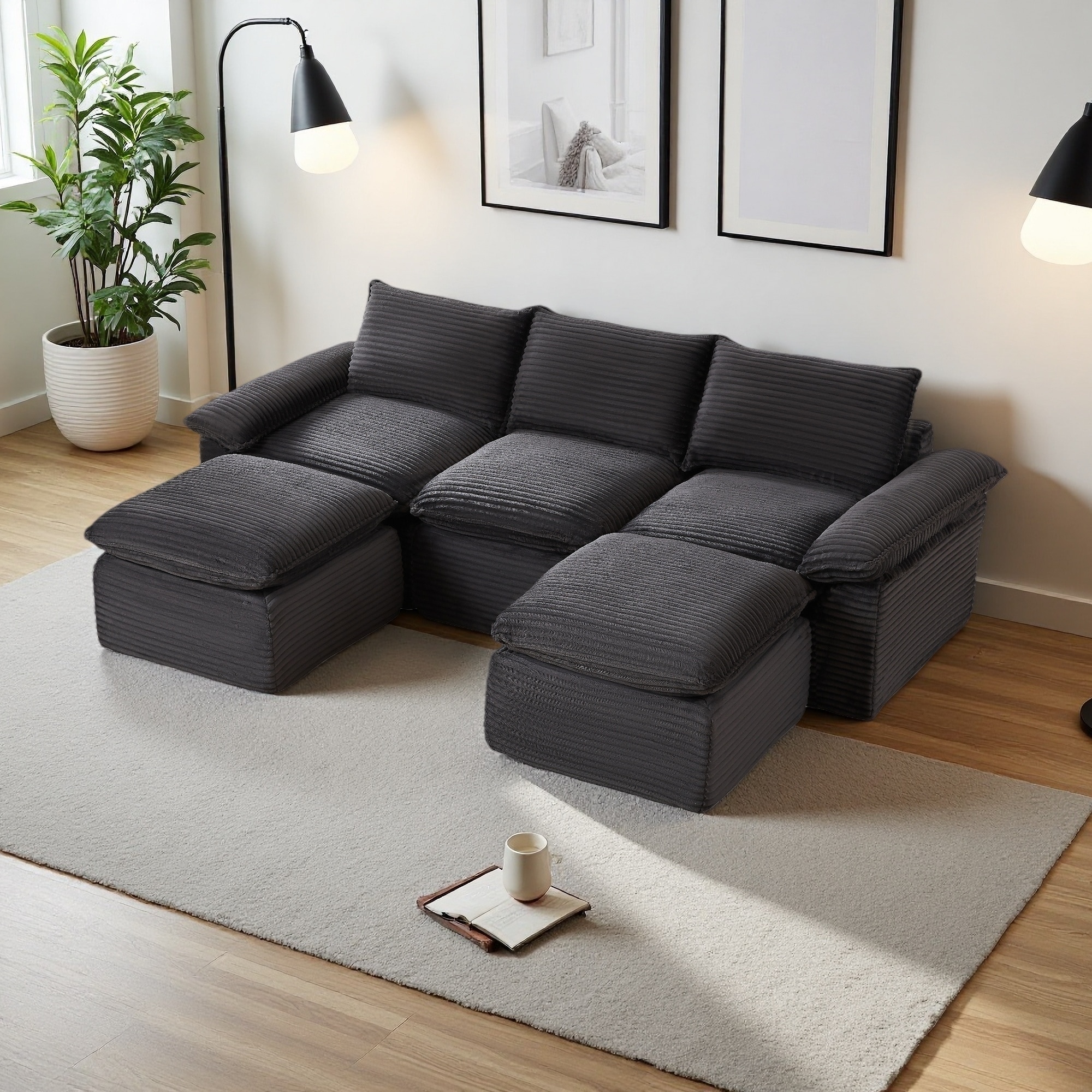 111.03" Corduroy Modular Cloud Sofa with High-Density Foam and Free Combination (5-Seater)