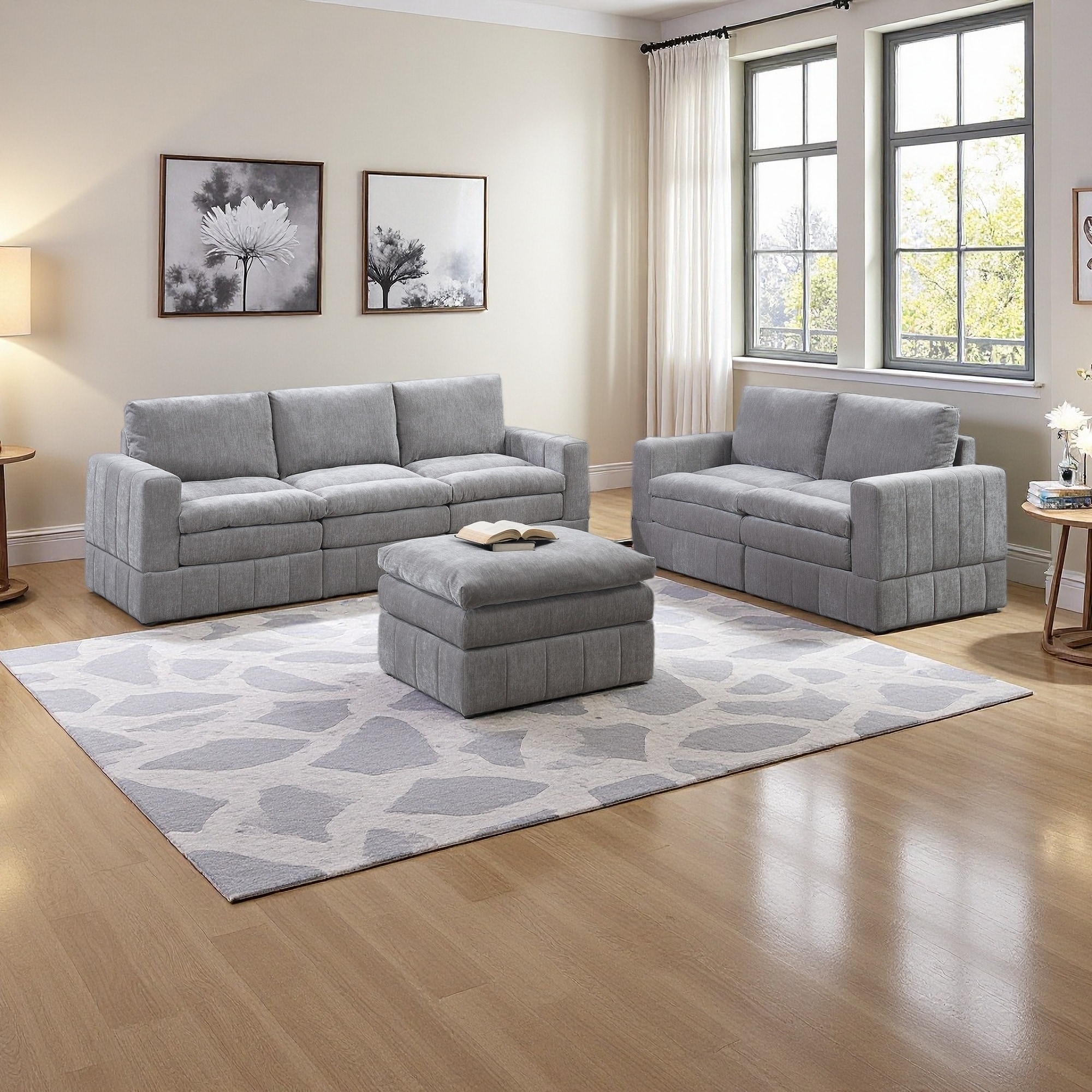 Oversized Modular Corduroy Sectional Sofa Set with Ottoman, 3-Seater / 4-Seater Deep Seat Lounge Couch for Living Room