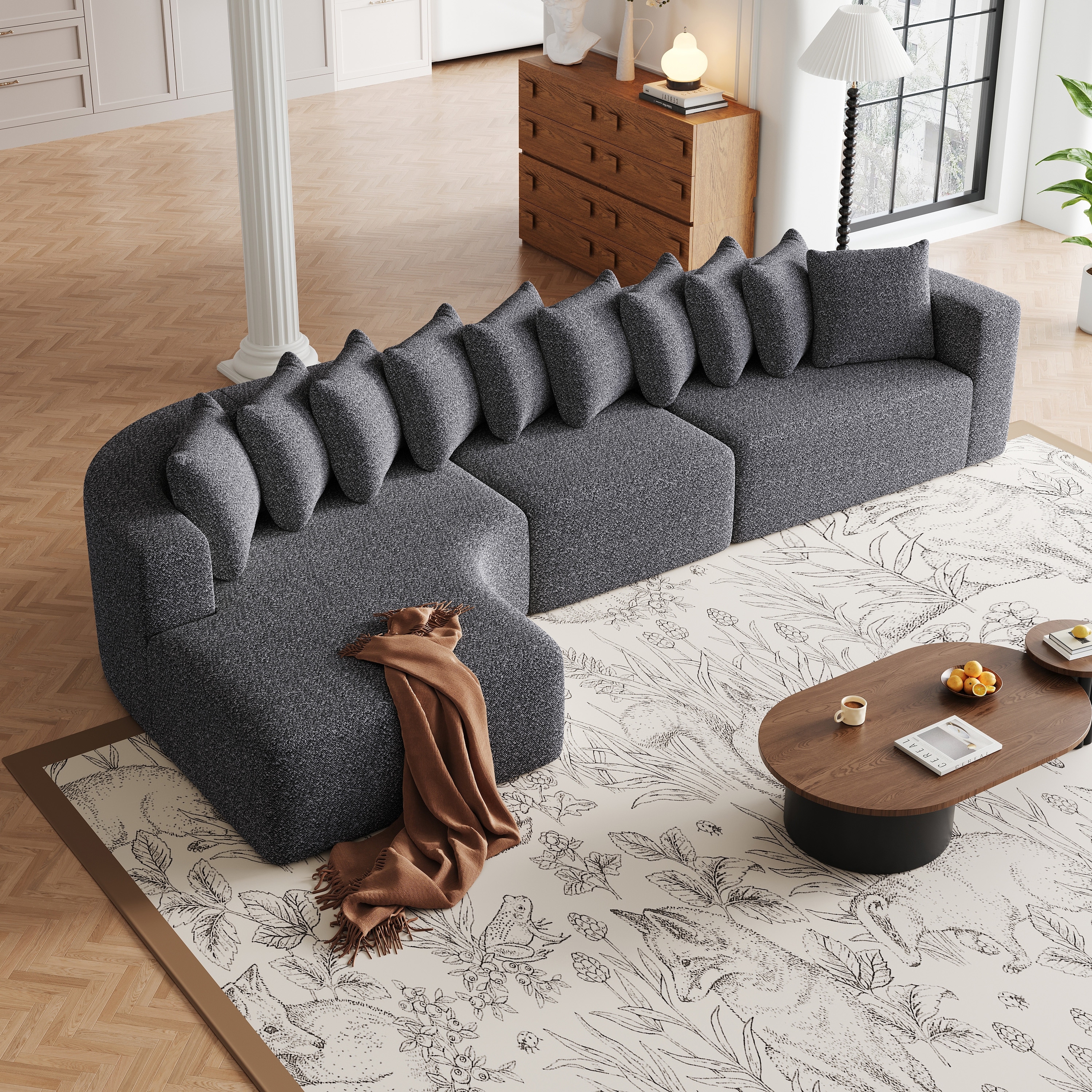131.1" Chenille Modular Sofa, Deep Seat Curved Cloud Couches Set, 4 Seater Oversized L Shaped Sectional Couch with Left Chaise