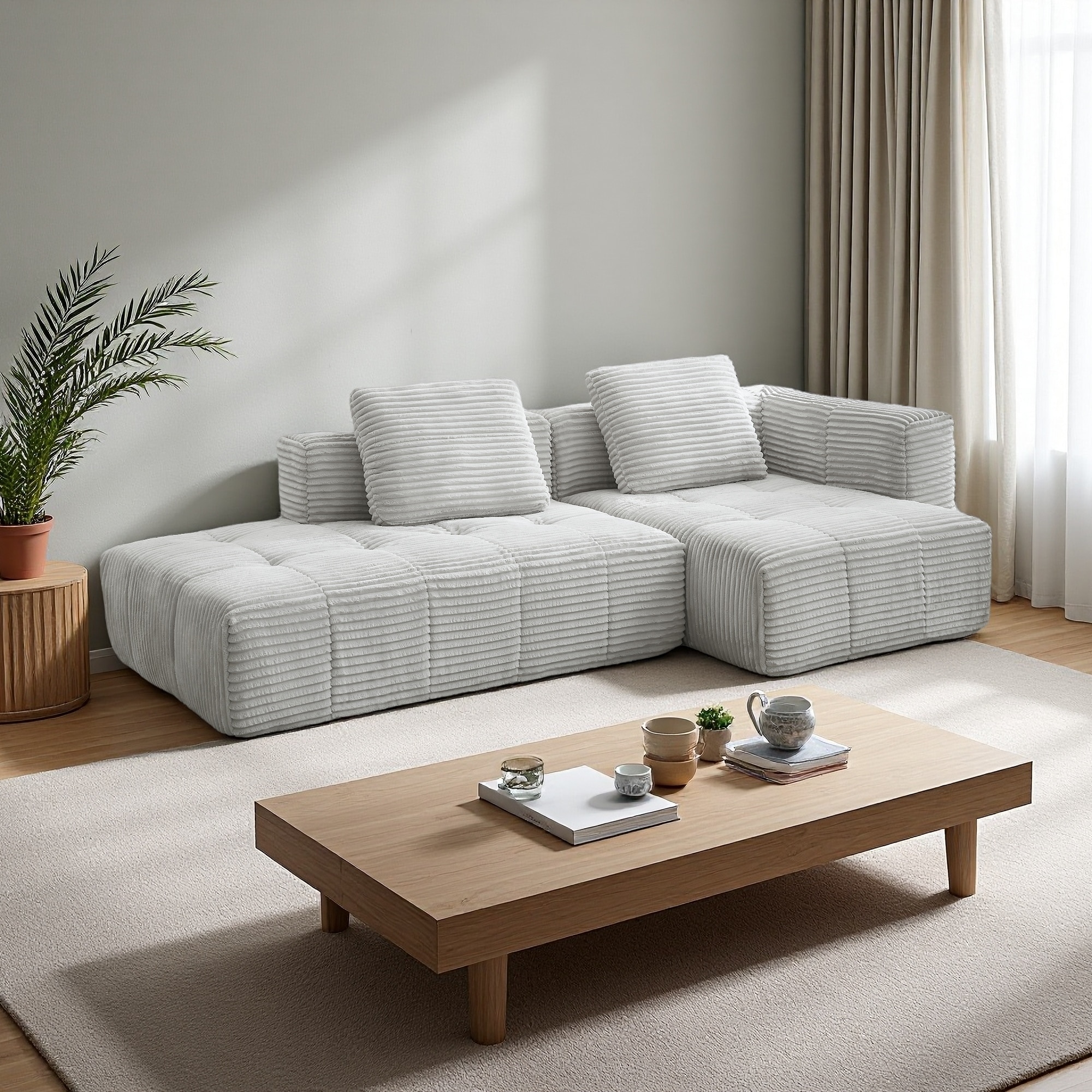 107.5" Corduroy L-Shaped 3-Seat Sectional Sofa with Chaise, No Assembly