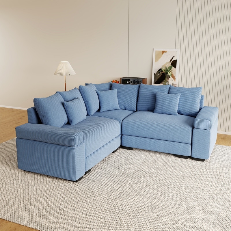 Modular L Shaped Sectional Sofa with Chaise Lounge, Corduroy Upholstered Boneless Sleeper Sofa, Compression Sofa with Deep Seat