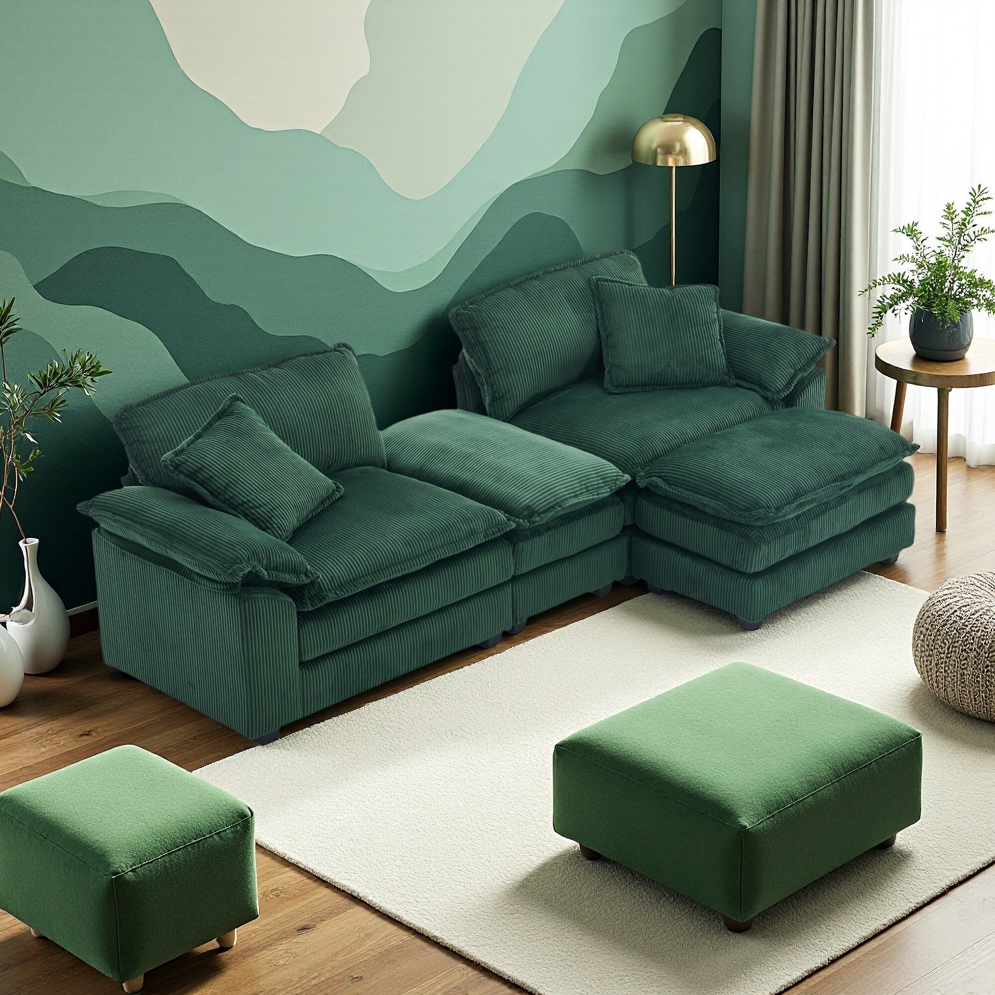 U-Shaped Modular Sectional Sofa – Modern Minimalist Corduroy Couch with Sleeper Function, Perfect for Living Room or Bedroom.