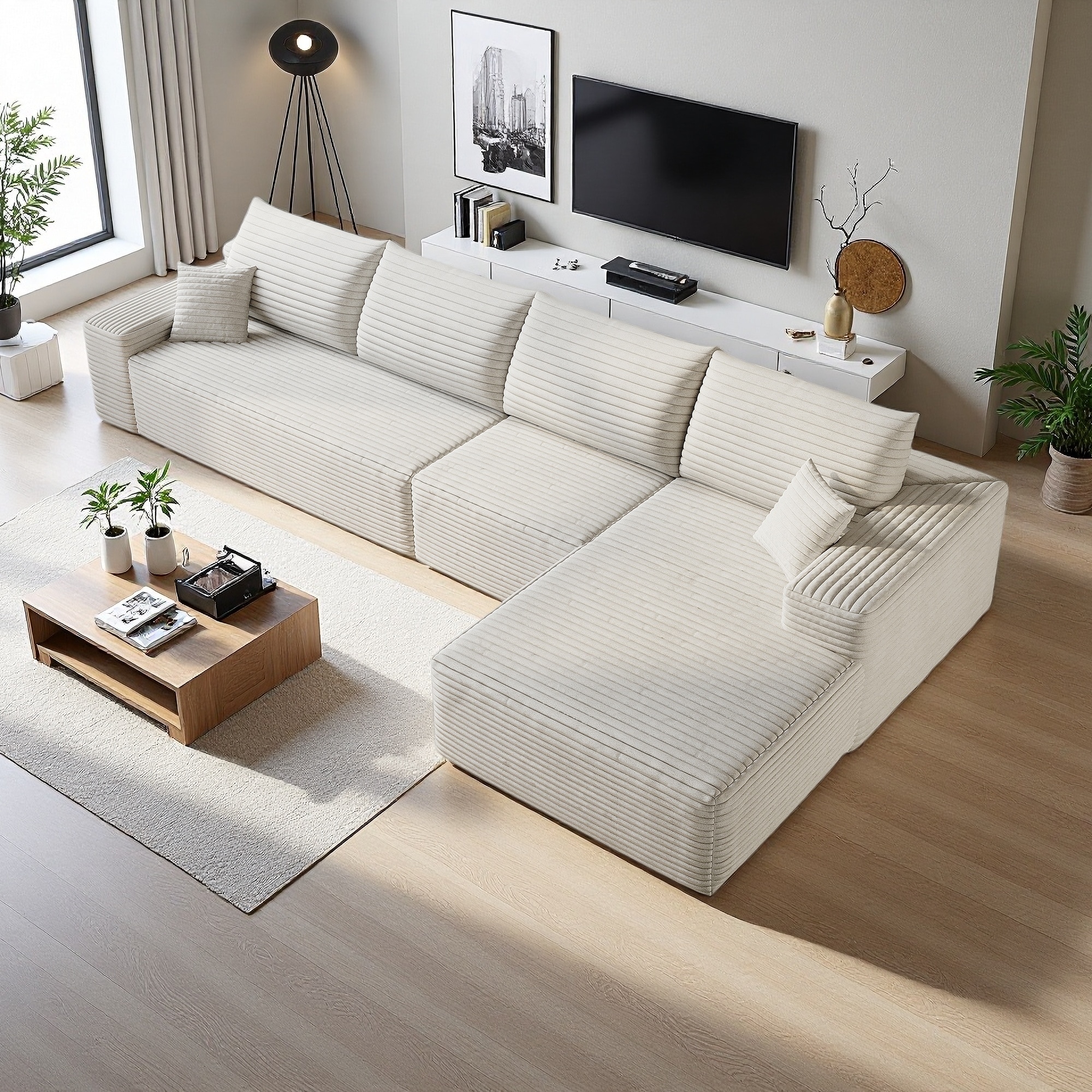 135" Plush Corduroy L-Shaped Sectional Sofa with Right Chaise & Deep Cushions