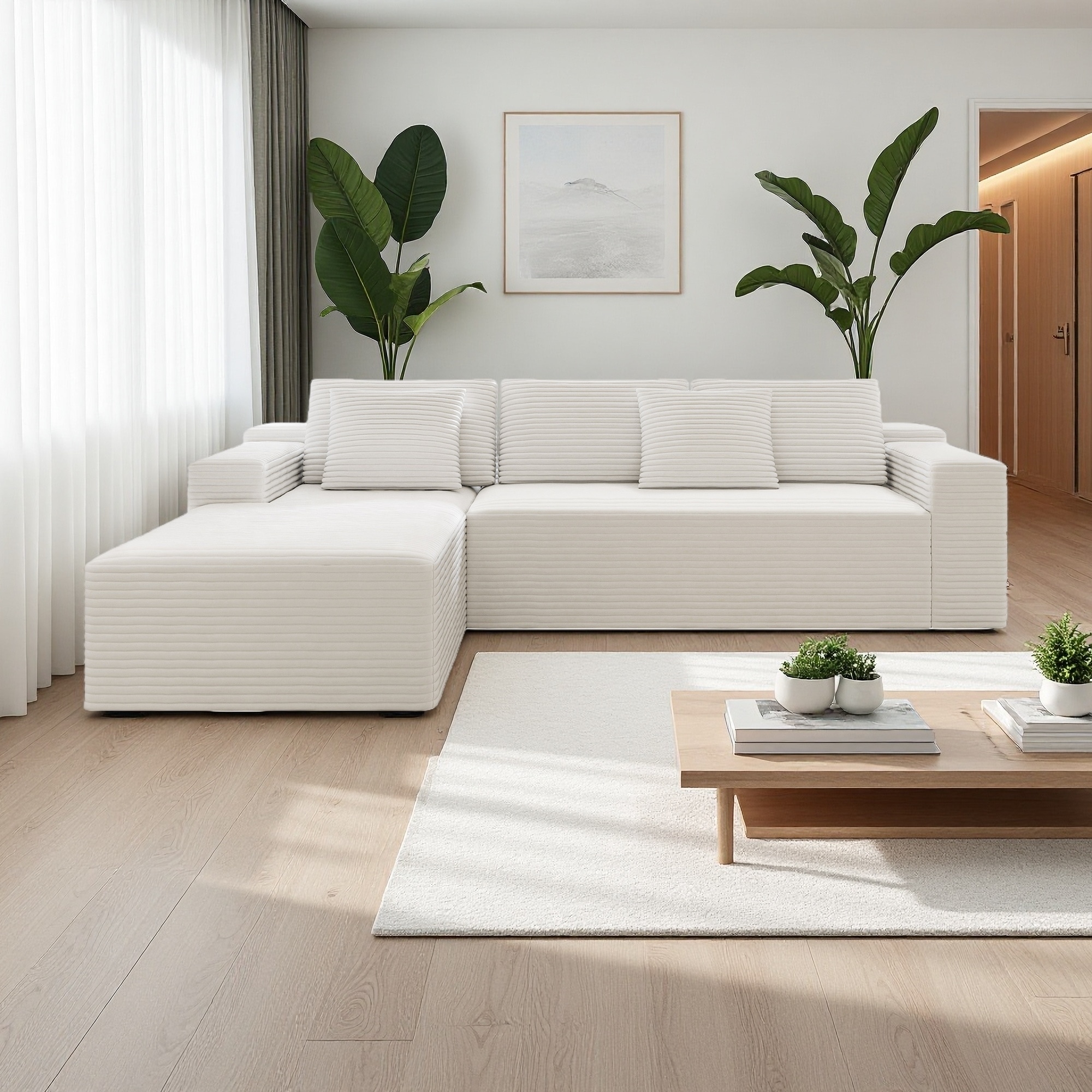104.3" Plush Corduroy Modular Sectional Sofa with Left Chaise Lounge and No Assembly Required