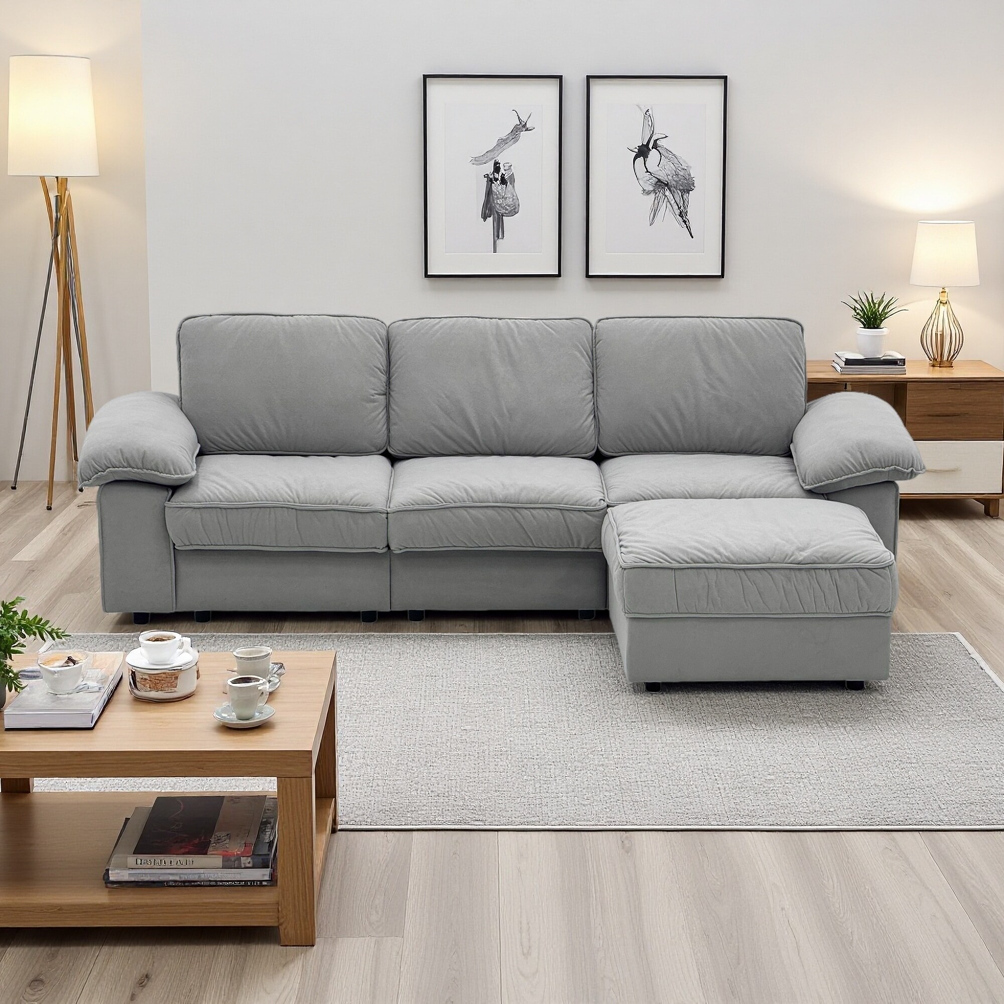 105.5" Velvet L-Shaped Sectional Sofa with Ottoman, Storage & Deep Seat Cushions (4-Seater)