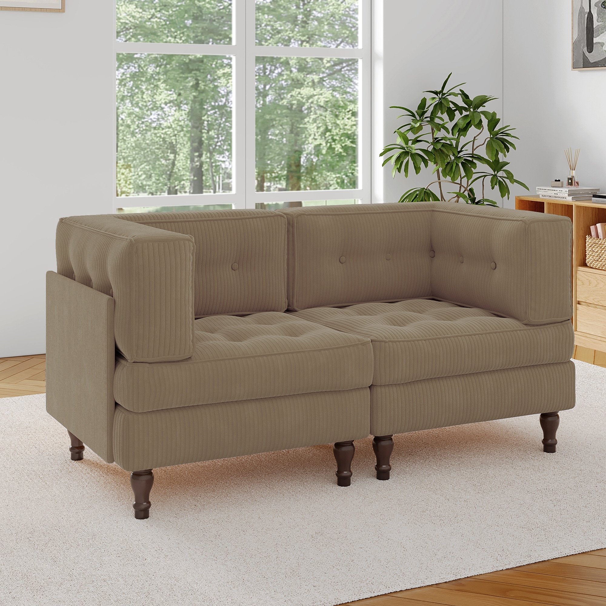 Modular Corduroy Corner Sectional Sofa Couch Set with Tufted Cushion