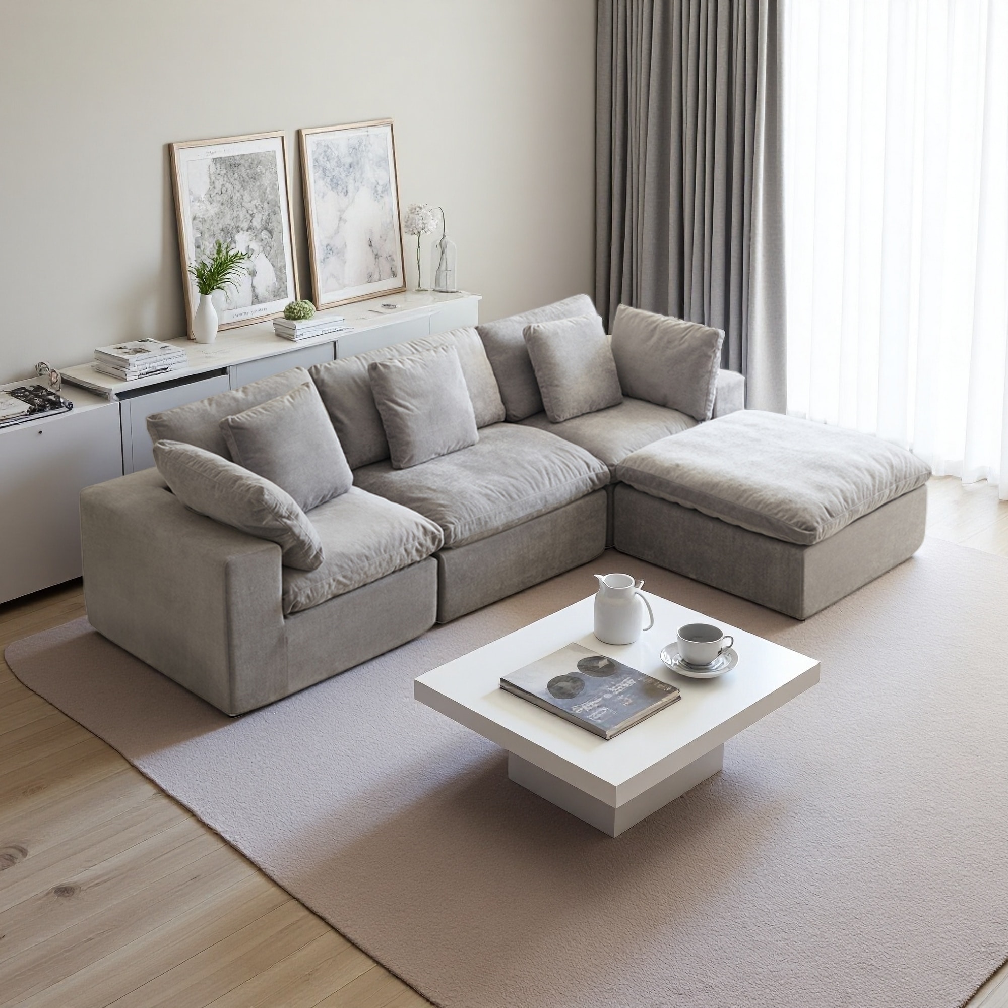 118.11" Corduroy Cloud L-Shaped Sectional Sofa with Ottoman and Deep Seat Cushions (4-Seater)