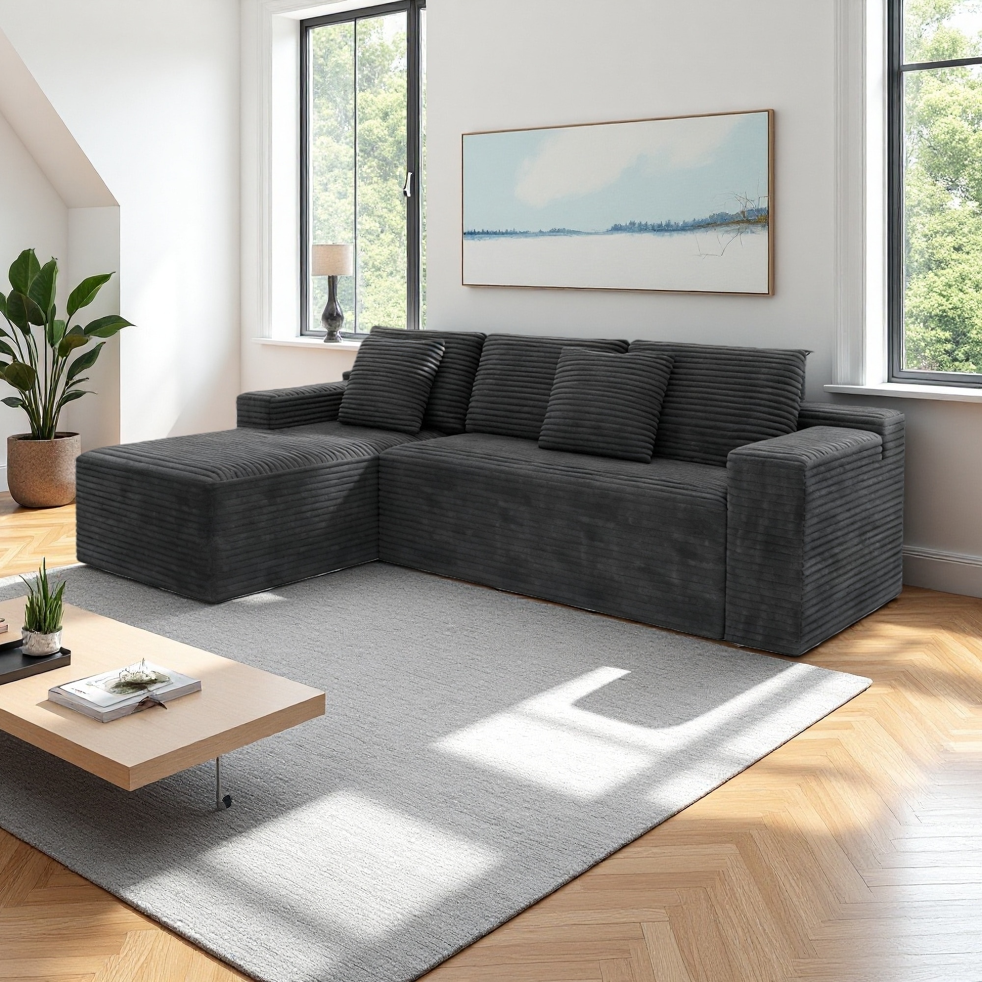 104.3" Plush Corduroy Modular Sectional Sofa with Left Chaise Lounge and No Assembly Required