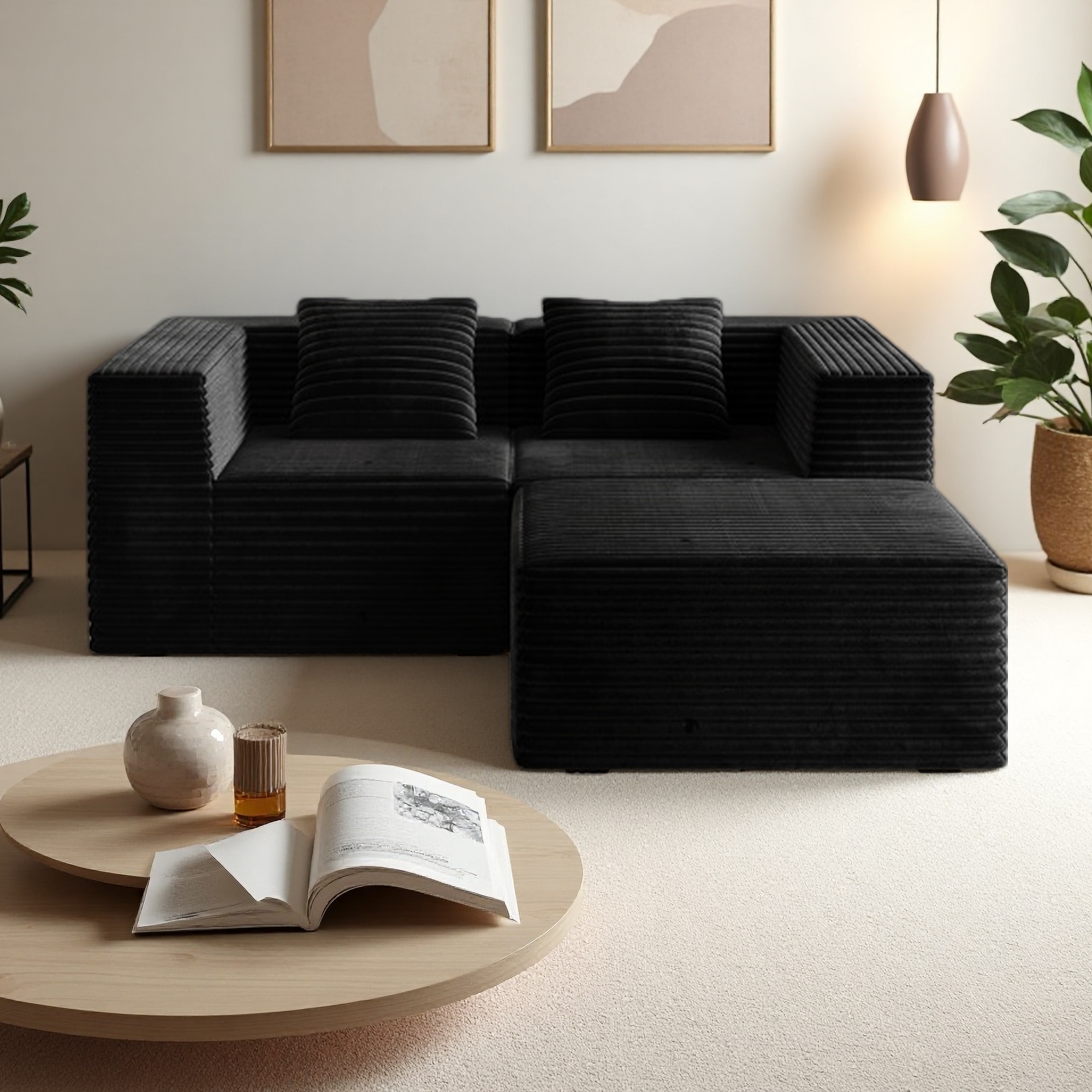 77.17" Corduroy Modular Sectional Sofa with Deep Seat, Ottoman and No Assembly Required