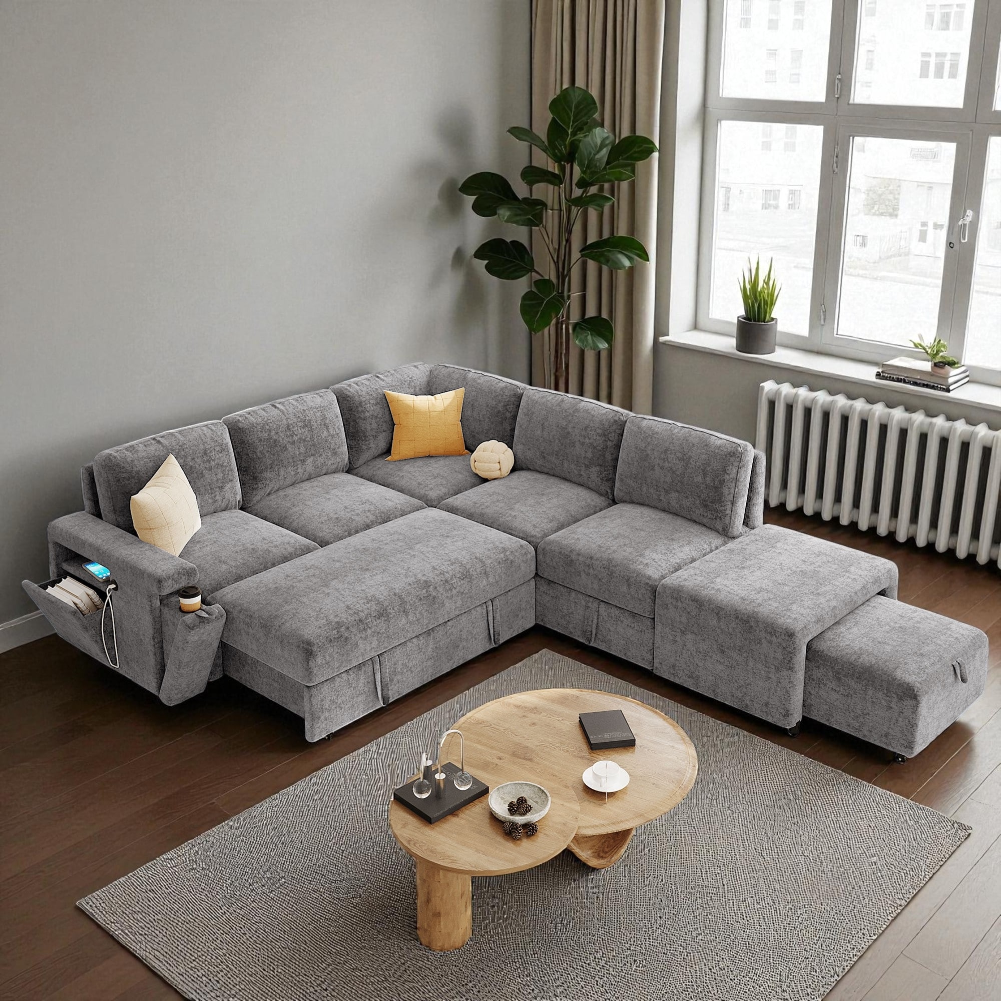 84.75" L Shape Sleeper Sectional Sofa, 2 in 1 Pull Out Sofa Bed Couch with Storage Ottoman for Living Room and Small Apartment