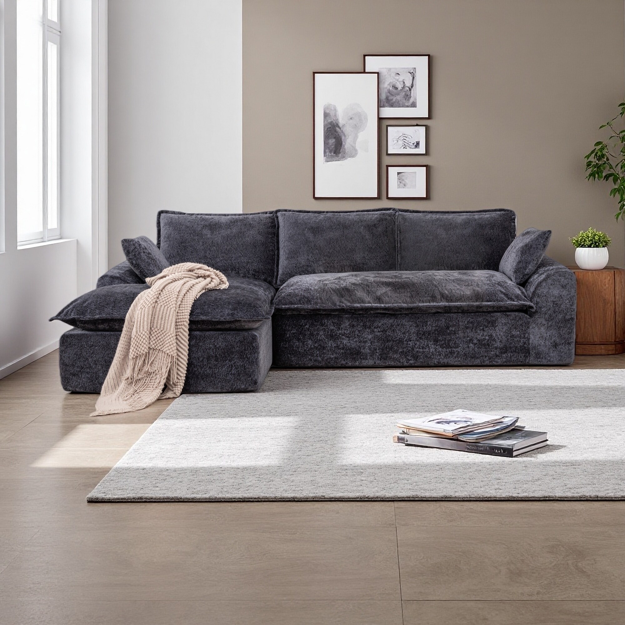 103.15" Chenille L-Shaped Cloud Sectional Sofa with Left Chaise, Memory Foam