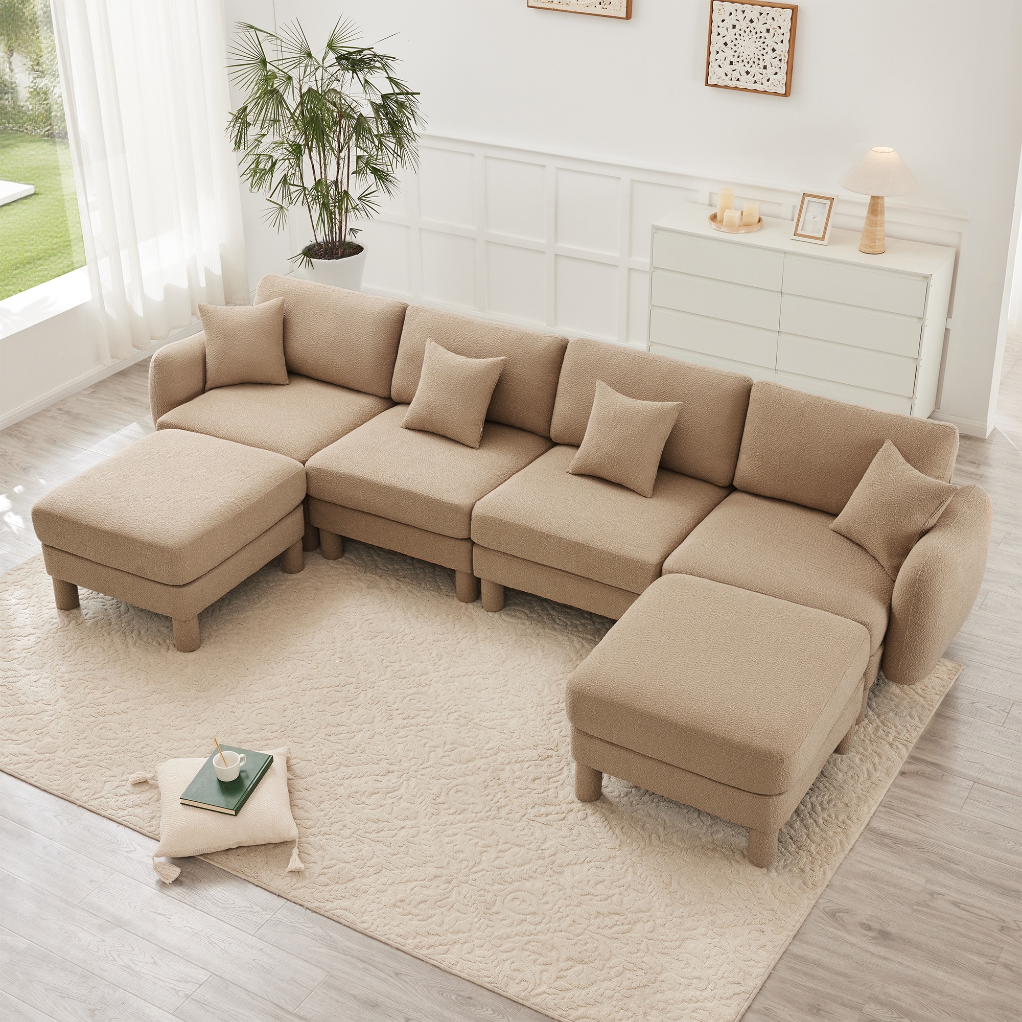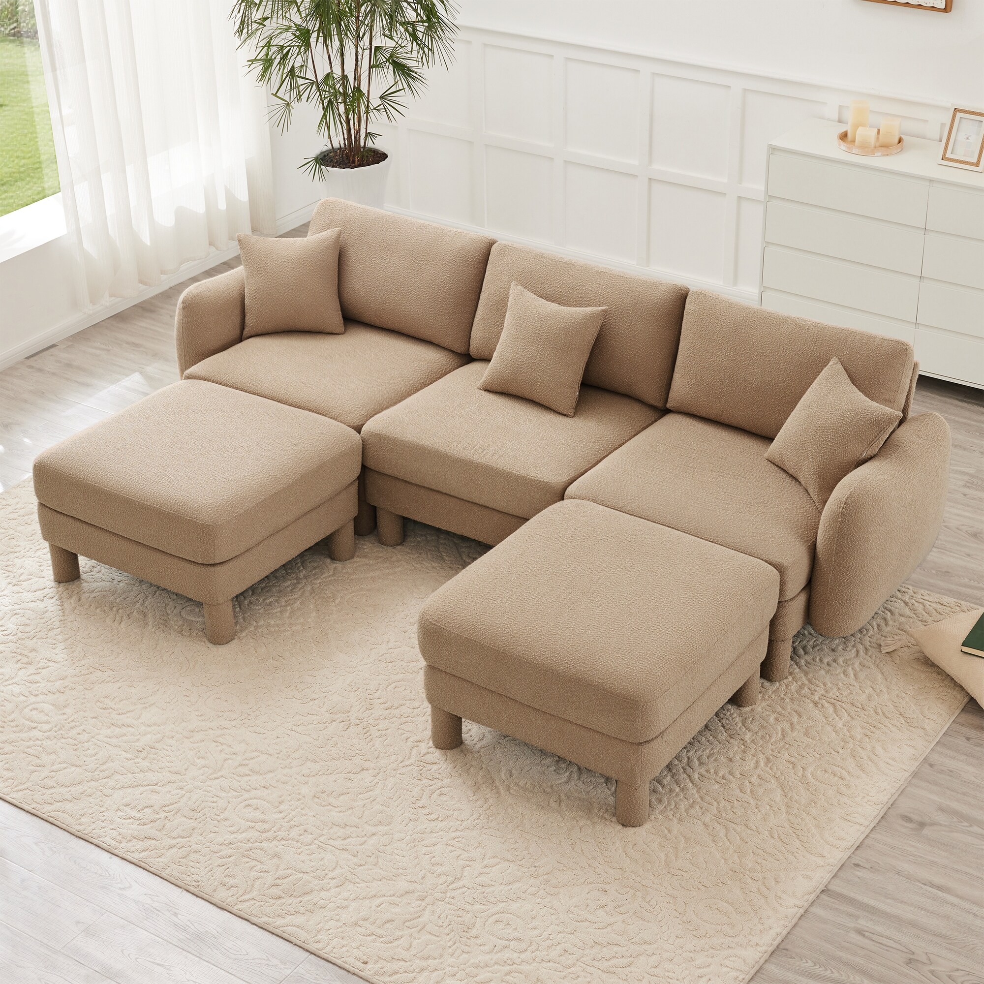 Deep Seat Modular Sectional Sofa Boucle Fabric Upholstered Couch with Curved Arm and Cylindrical Leg Free Combination Sofa Set