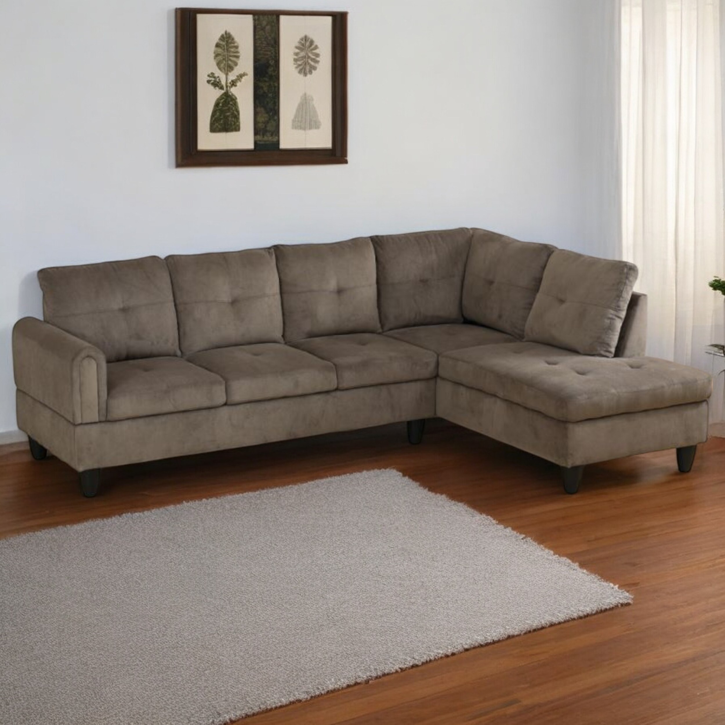 HOOOWOOO Modern Upholstered Fabric Sectional Sofa with Chaise