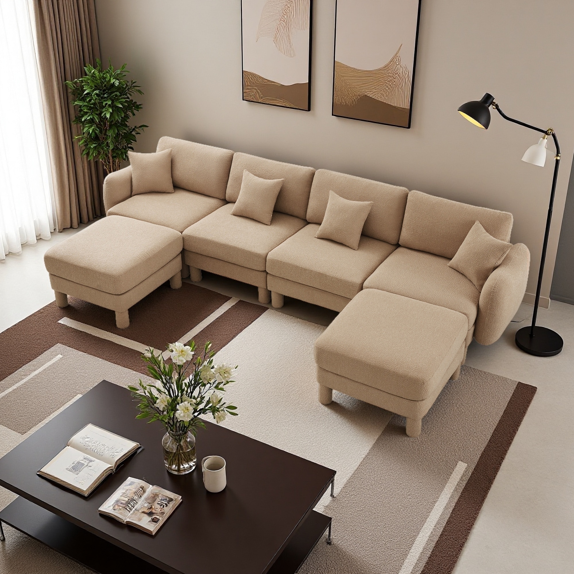 Modular Cotton Flannel Plush Sectional Sofa with Ottomans