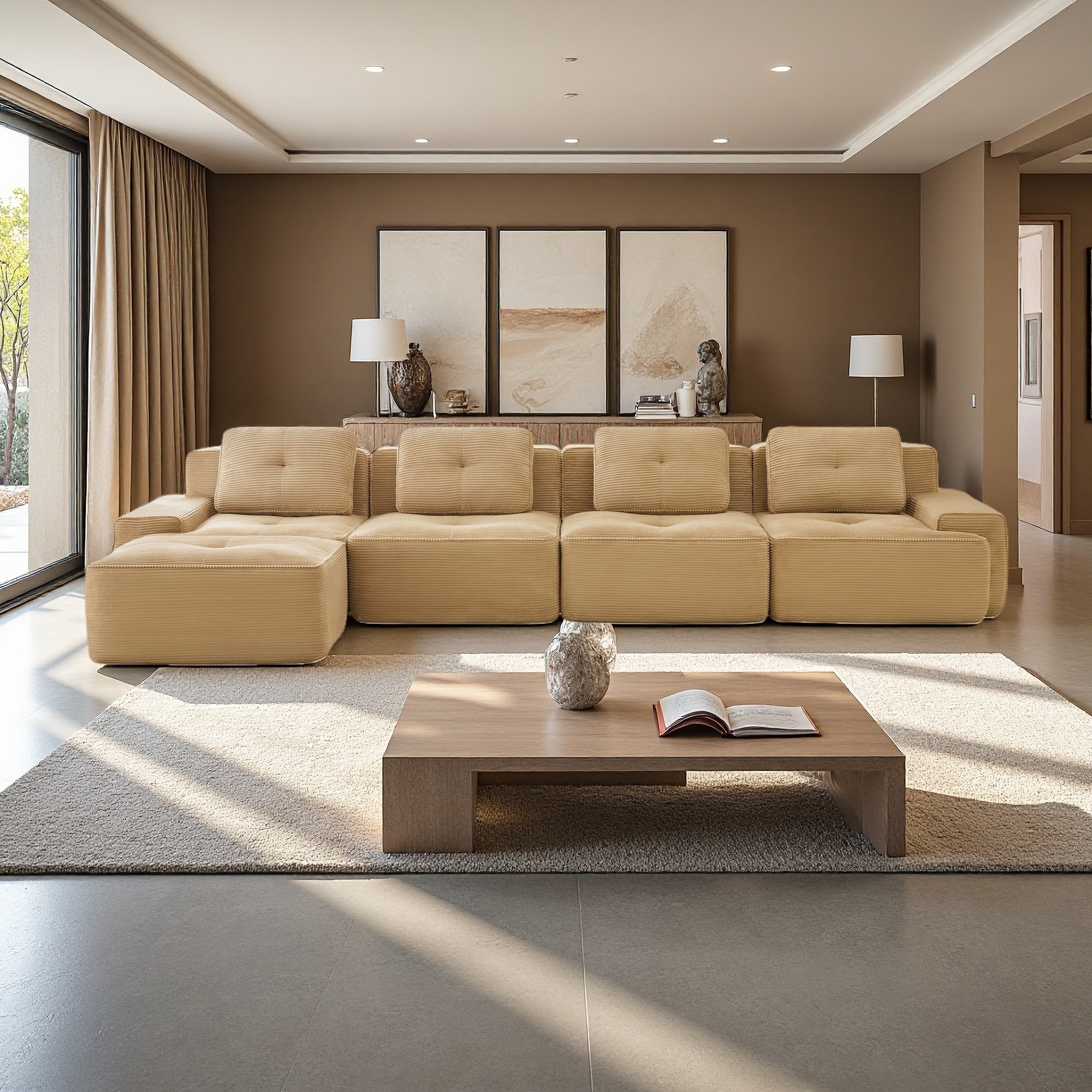 152.8" Corduroy L-Shaped Modular Sectional Sofa with Deep Seat and Movable Ottoman