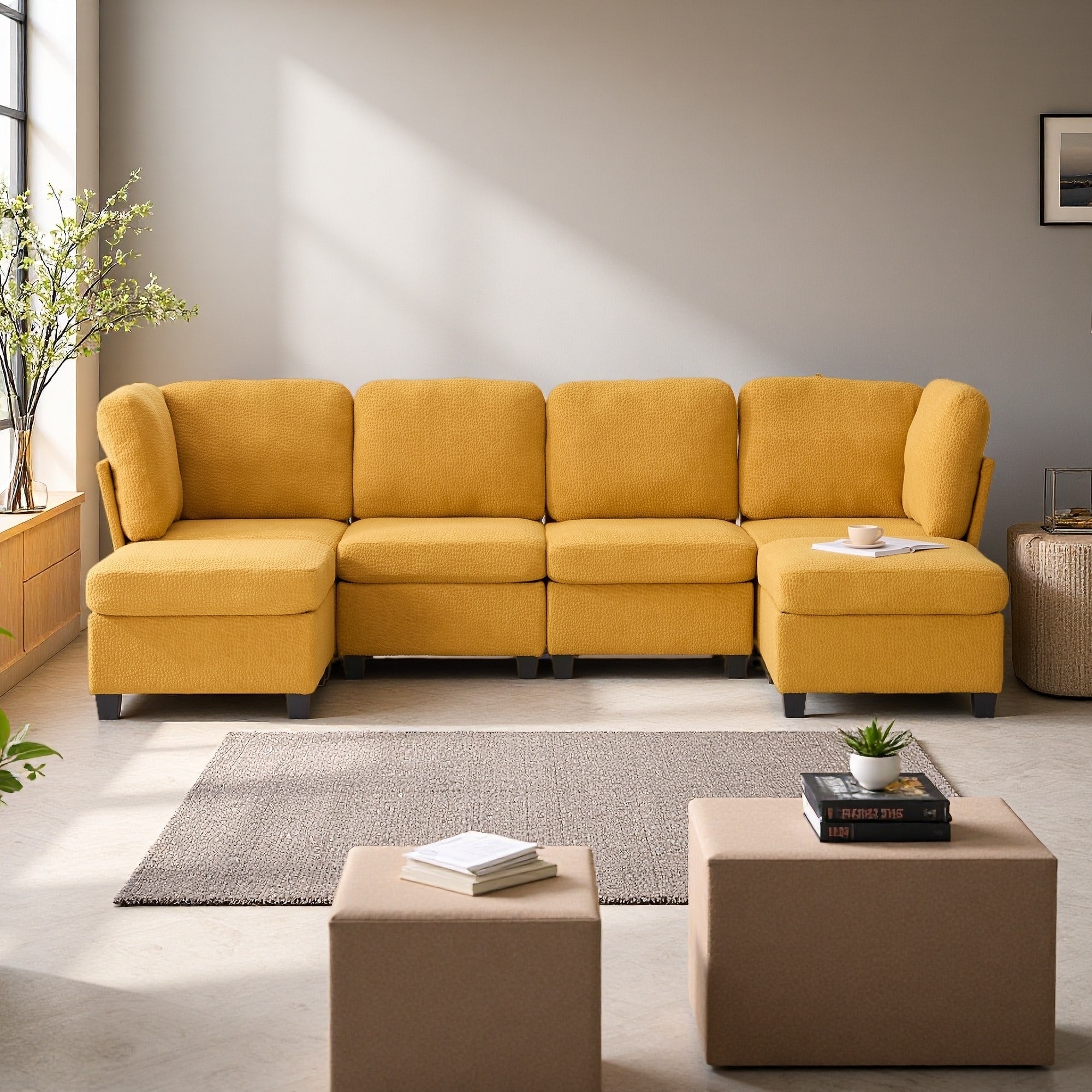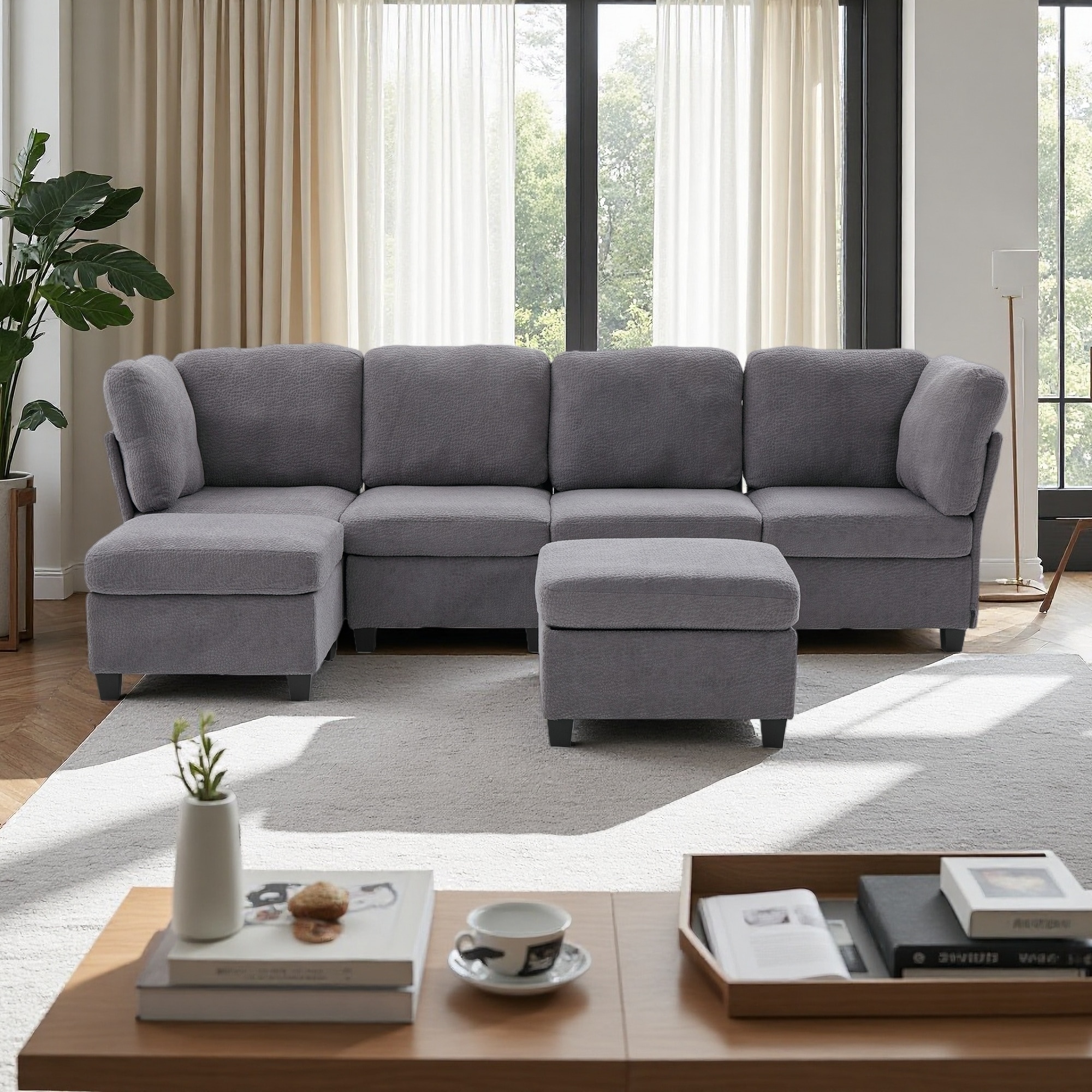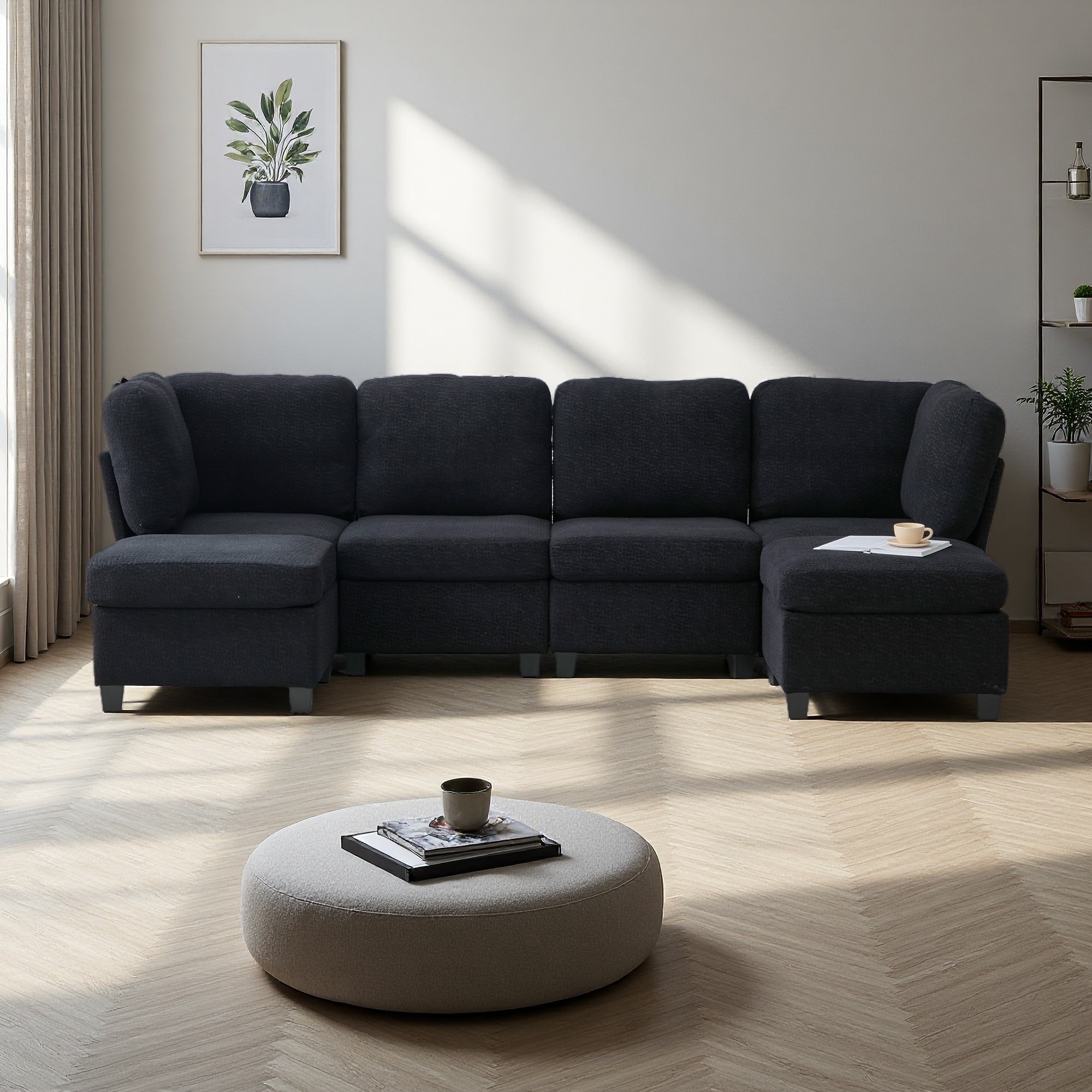 Modular Cotton Flannel Plush Sectional Sofa with Ottomans
